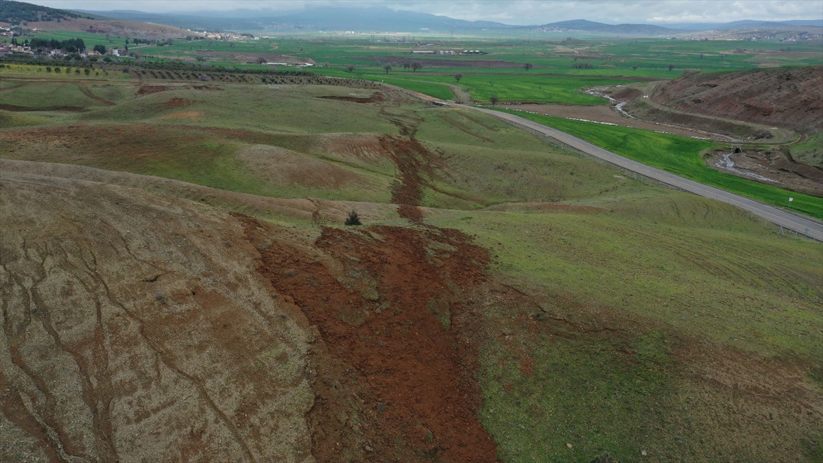 Deprem nedeniyle dağdan kaya parçaları yuvarlandı, yollarda kaymalar yaşandı ve bazı tarlalarda yer değişikliği oluştu.