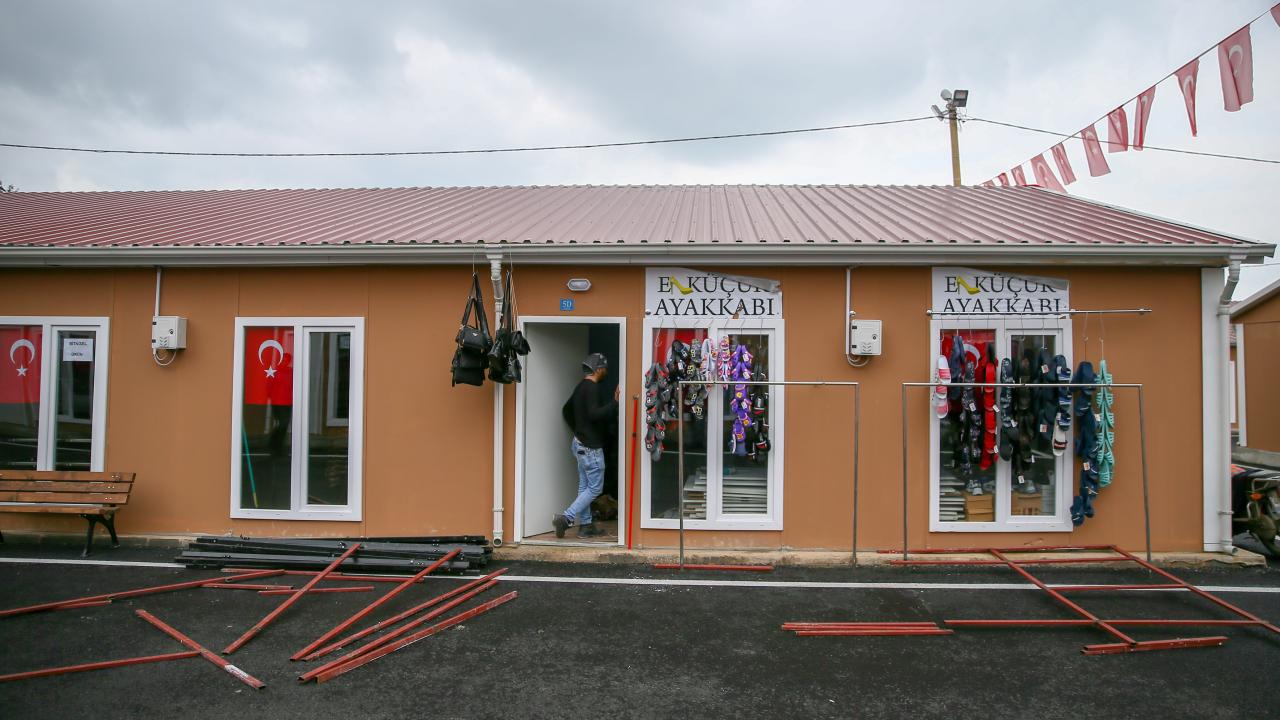 Depremde iş yerleri yıkılan ya da ağır hasar alan küçük esnafın yeniden ekonomik hayata dahil olması için Kocaeli Valiliğince kente kazandırılan "AFAD Kocaeli Çarşısı"nda iş yerlerinde yaralar sarılmaya çalışılıyor.