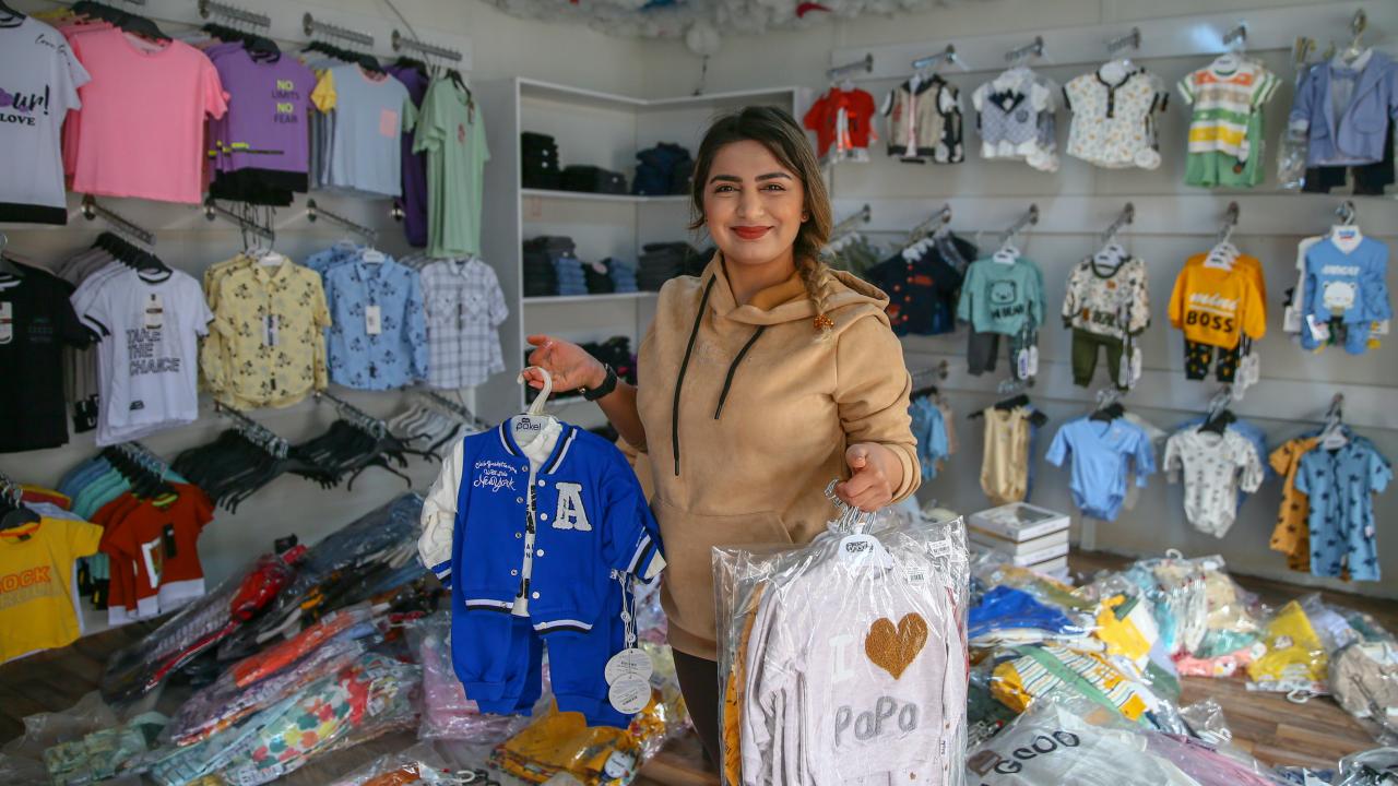 Şehir merkezindeki bebek ve çocuk giyim mağazası yıkılan Fatma Korkmaz da bir süredir faaliyetlerini "AFAD Kocaeli Çarşısı"nda sürdürüyor.