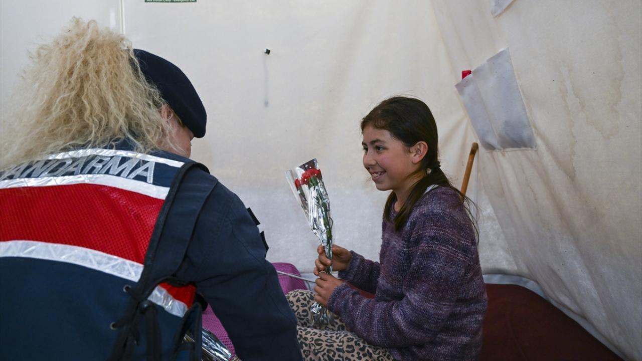 Kahramanmaraş'ta kadın astsubaylardan depremzede kadınlara 8 Mart sürprizi