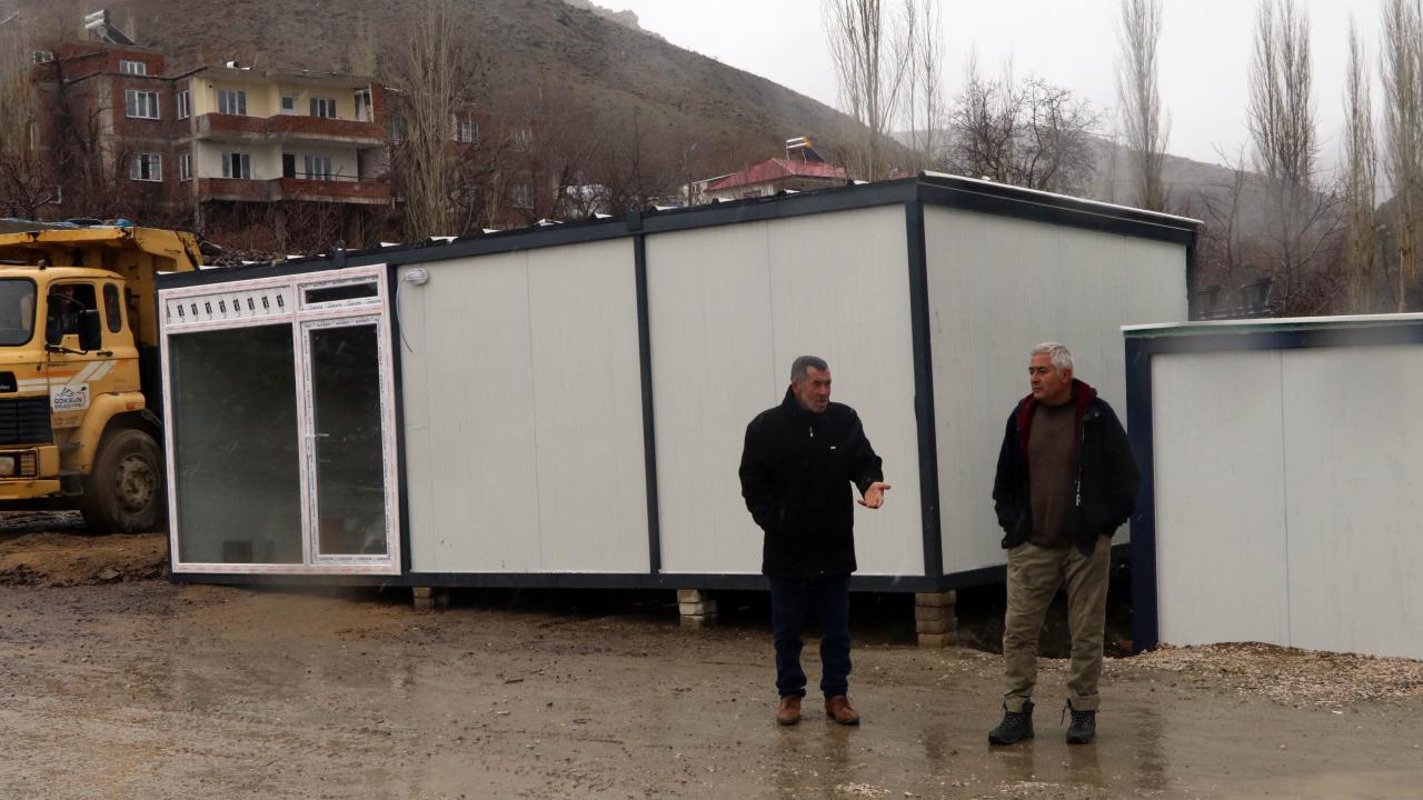Ericek Mahallesi sakinleri depremlerden sonra ayrıldıkları mahallelerine tekrar dönmeye başlarken vatandaşların ihtiyaçlarını görmesi için konteyner dükkanlar hazırlanıyor.