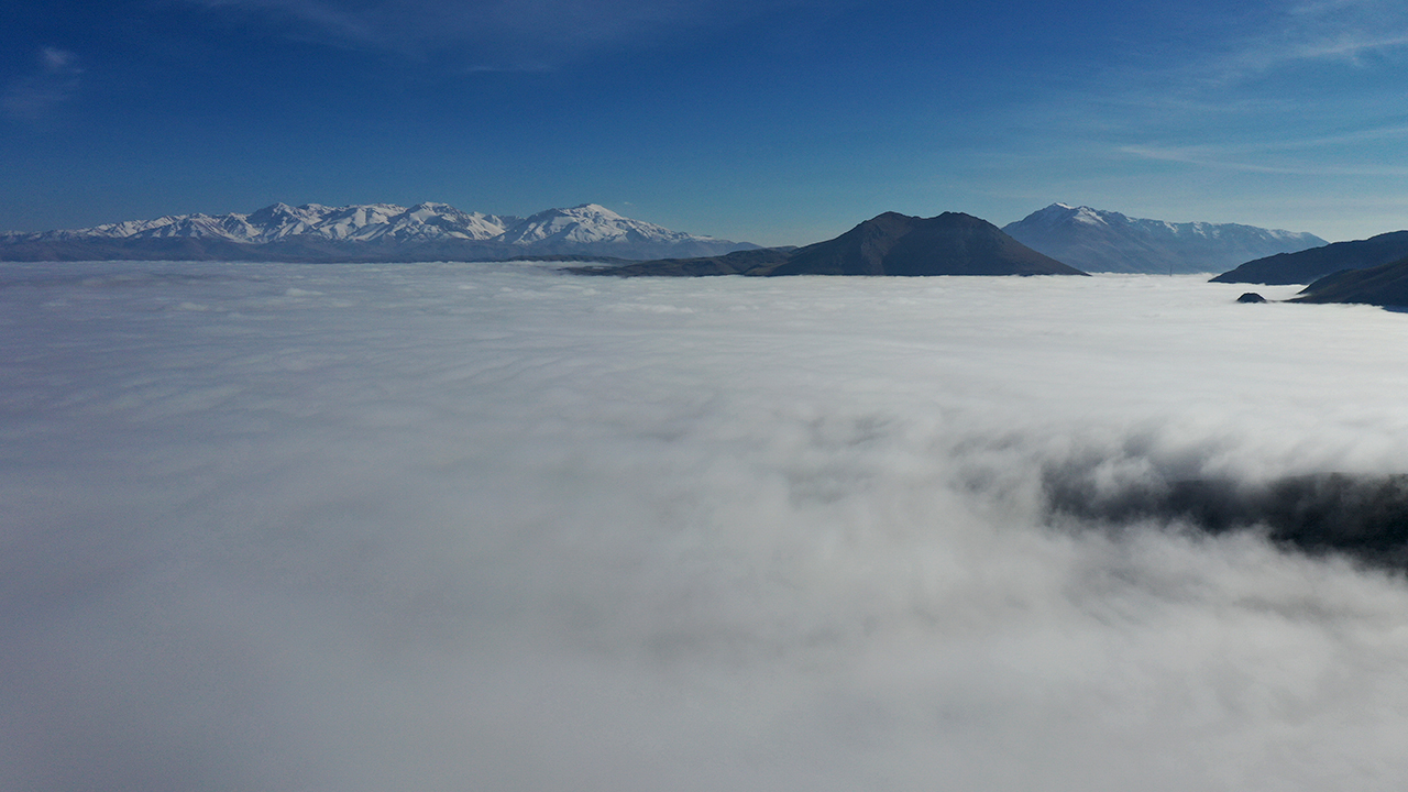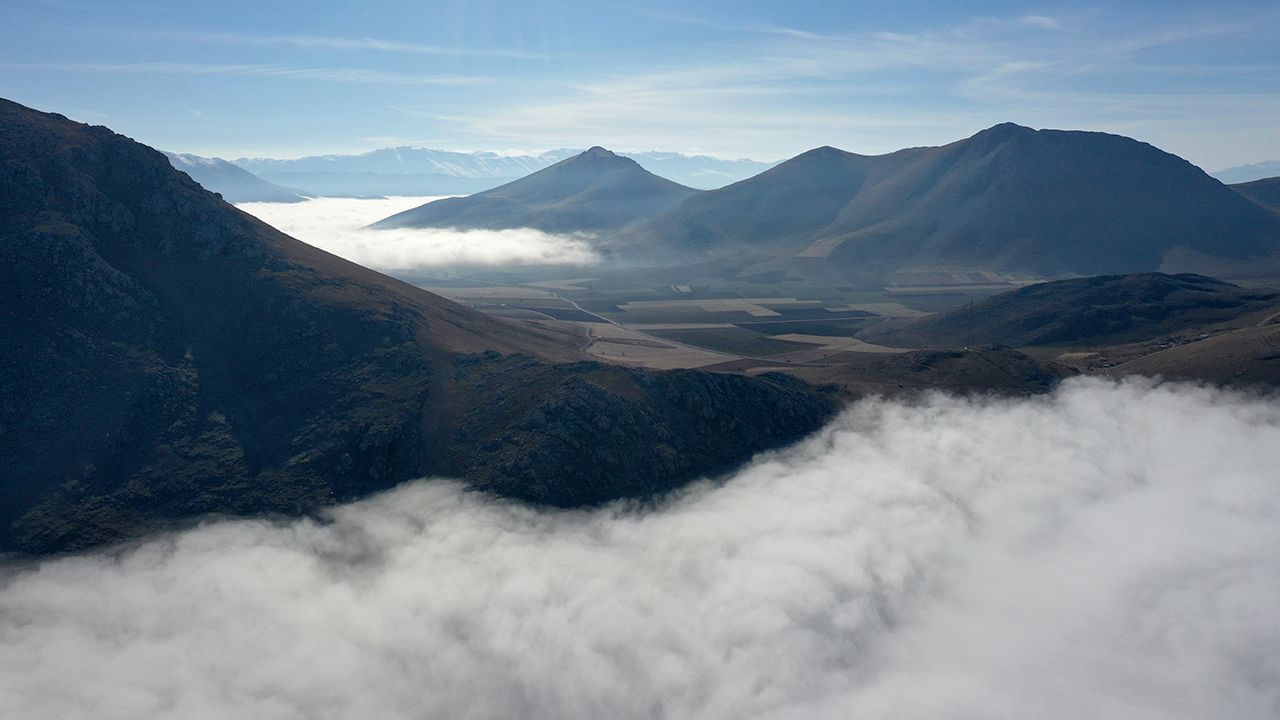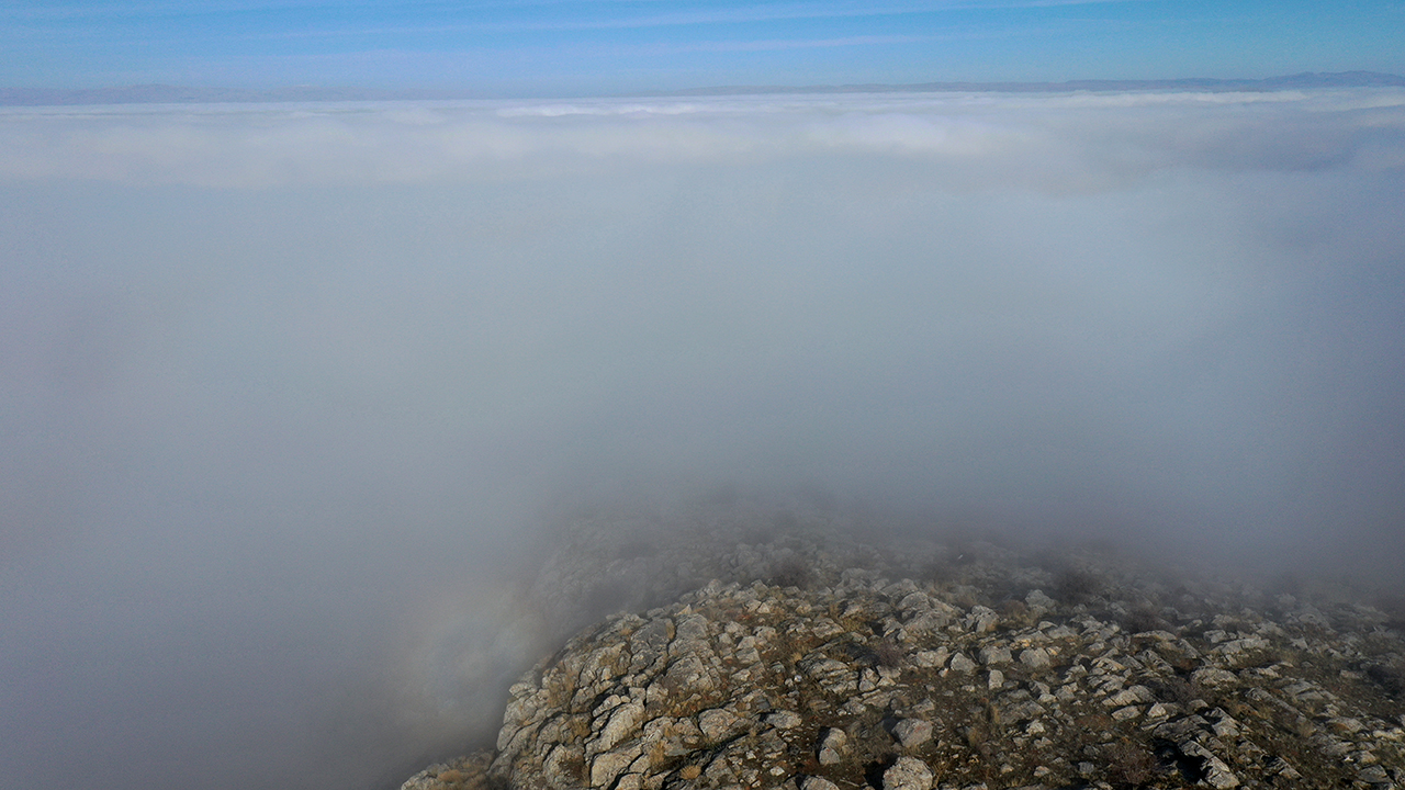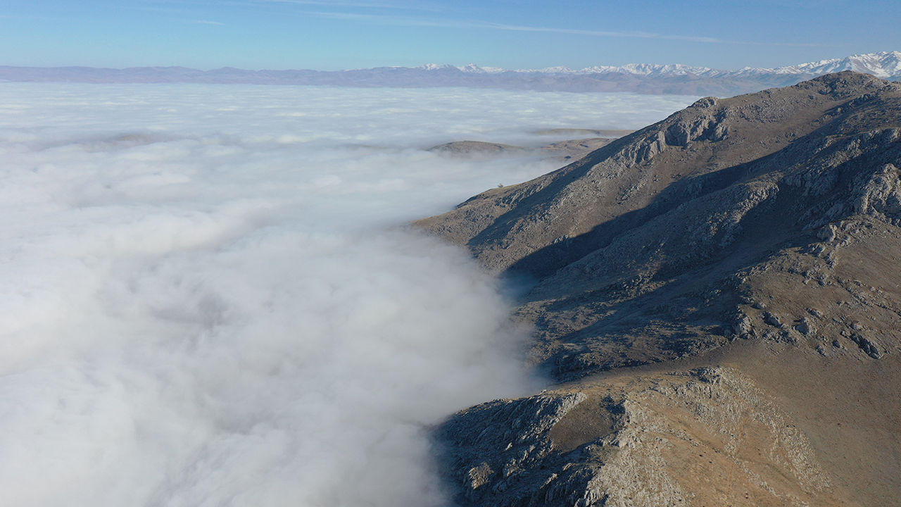 Kahramanmaraş'ın Elbistan ilçesinde soğuk havanın etkisiyle yüksek kesimlerde etkisini gösteren sis, güzel görüntüler ortaya çıkardı.