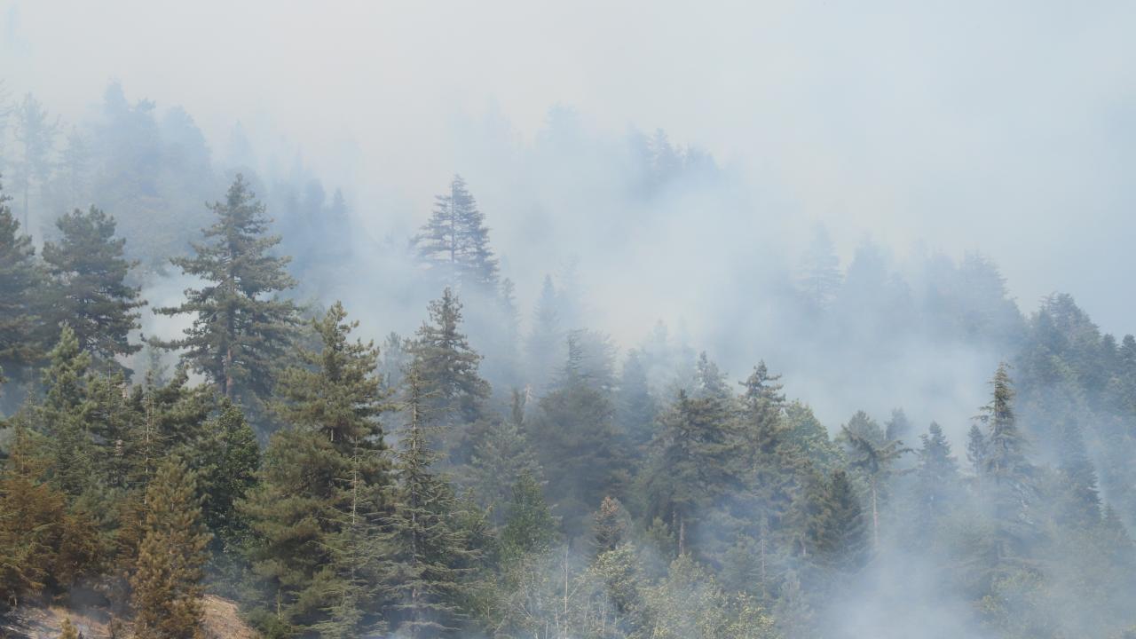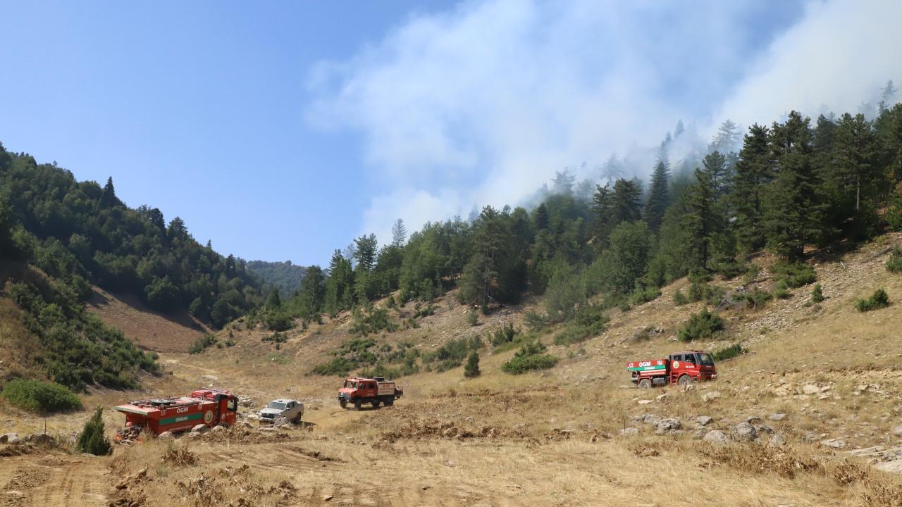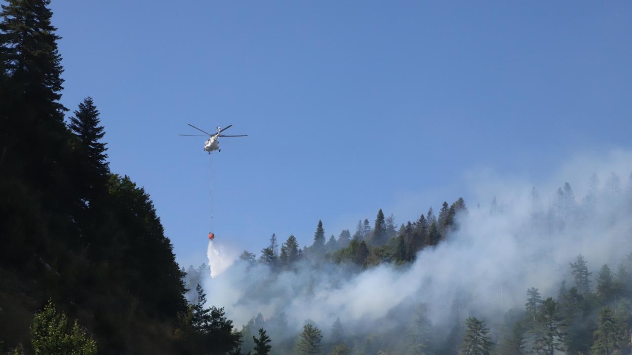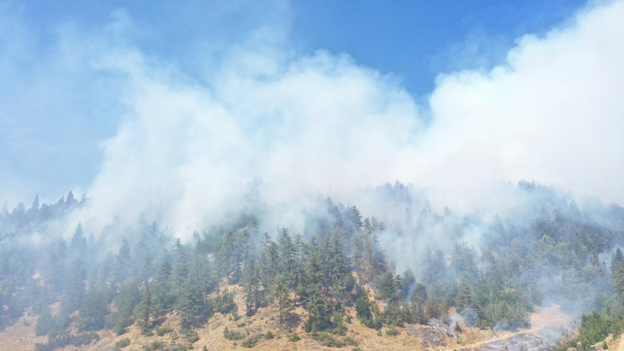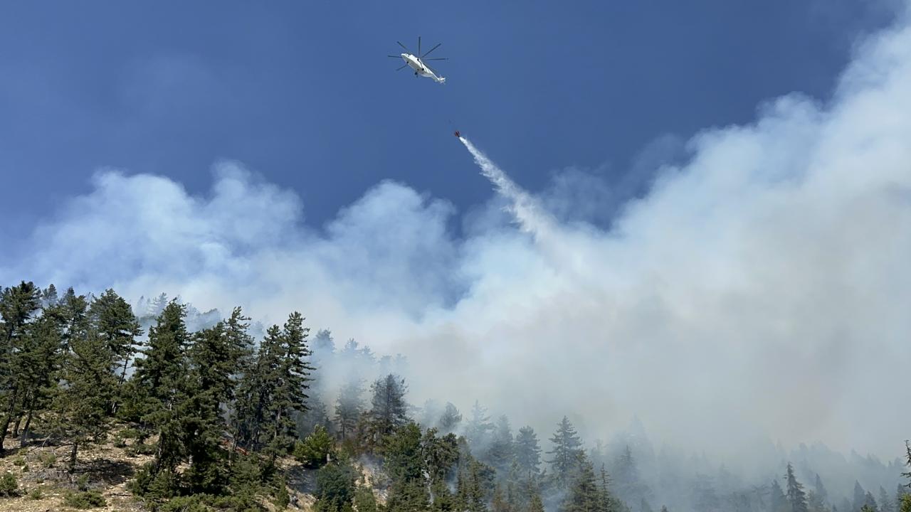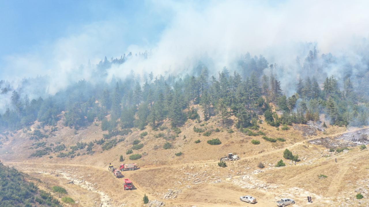 Uçak, helikopter ve yerden müdahaleyle yangının kontrol altına alınmaya çalışıldığını belirten Karartı, şu ana kadar 10 hektar ormanlık alanın zarar gördüğünü belirtti.