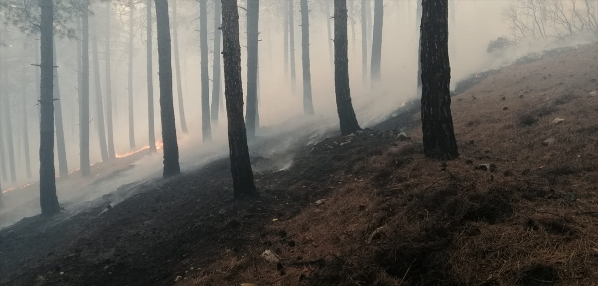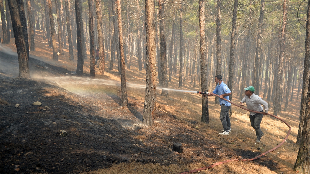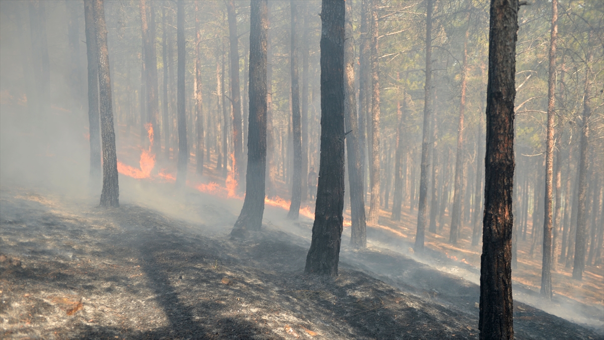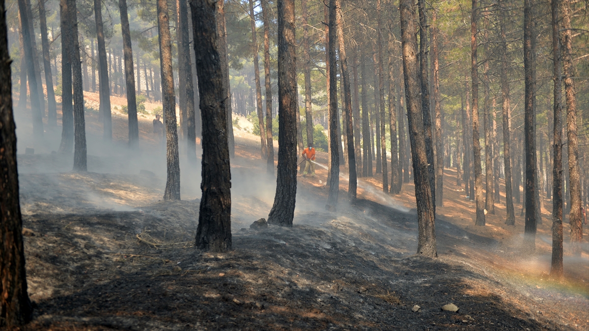 Soğutma çalışmaları süren yangında, yaklaşık 2 hektarlık alanın zarar gördüğü öğrenildi.