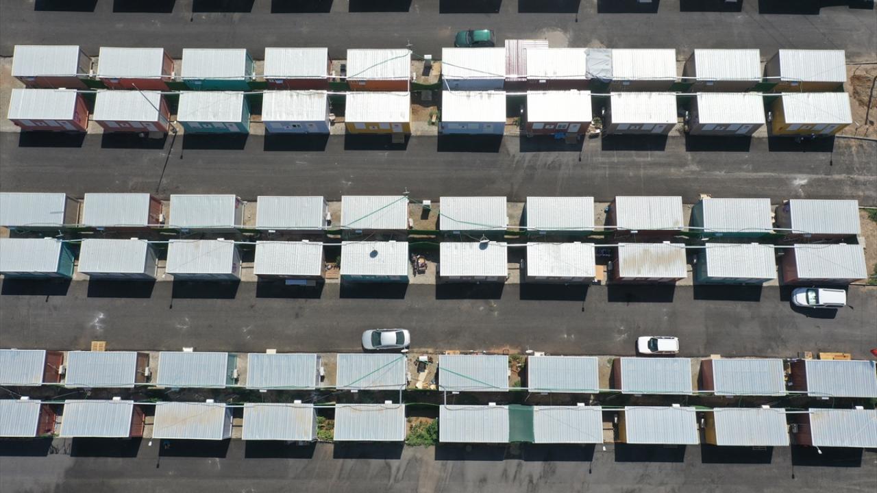 İş makineleri yardımıyla elektrik ve su hattının döşendiği yeni yaşam alanlarına, ısı yalıtımlı konteynerler konuluyor.