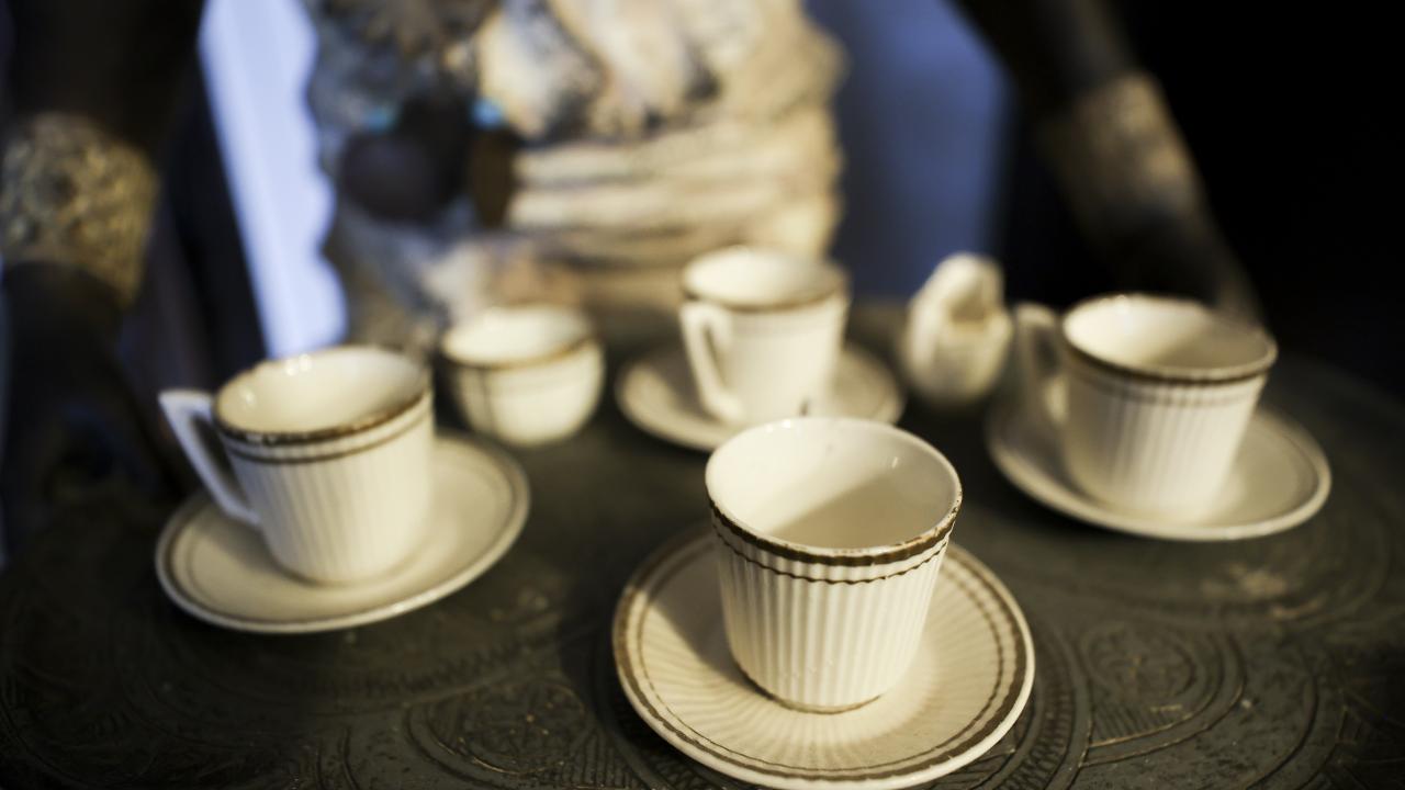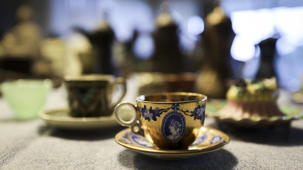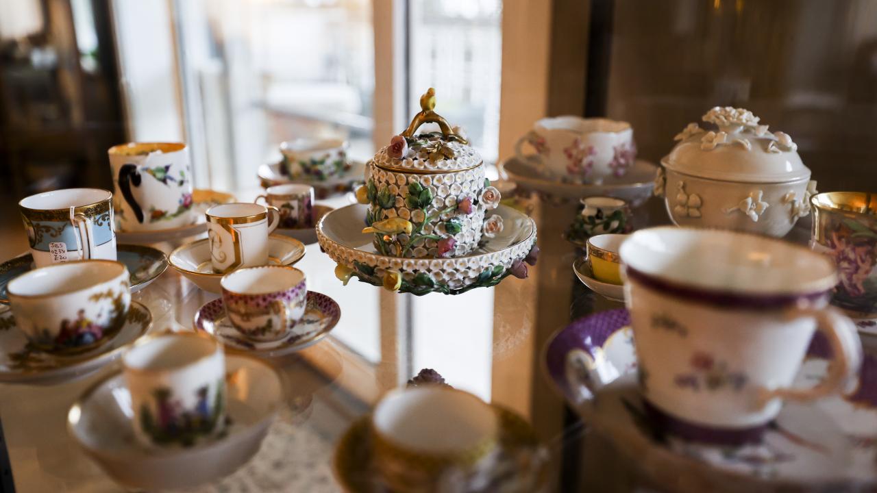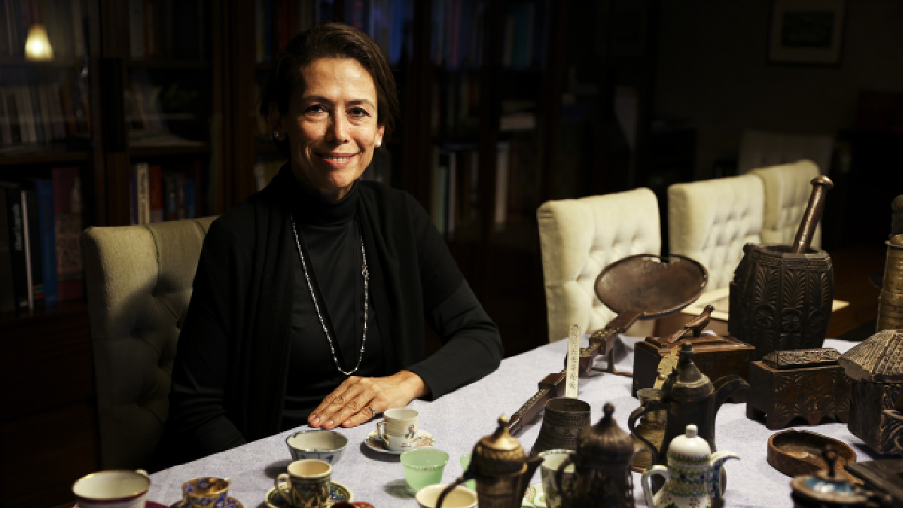 Nihal Bursa, koleksiyonundaki parçaların hepsinin ayrı bir alınış hikayesi ve macerası olduğunun altını çizerek, "Mesela bu fincan 1734 tarihlidir ve `Meissen` imalatıdır. Bir başka örnek bu kulpsuz fincan, içinde çok şey gizli. İçindeki gümüş telkari tekniğiyle yapılmış kapsül açılıyor. İçerisine amber, kakule ya da afyon gibi keyif ve lezzet arttırıcı ürünler konuluyor. Üzerine de kahve dökülüyor. Kahve içerken bütün bu malzemeler yavaş yavaş kahvenin içerisine karışarak kahve keyfinizi artıran bir unsur haline geliyor. Buna güğüm diyoruz yani çok sayıda kahve alan bir araç. 1712 tarihli, çok eski. 2015`te Topkapı Sarayı`nda düzenlenen sergiye koleksiyonumuzdan eserler vermiştik, bu güğüm de saraya giden ve orada 6 ay sergilenen bir parçaydı. Onun benim için yeri ayrıdır, Topkapı Sarayı`nı görmüş bir parçadır" dedi