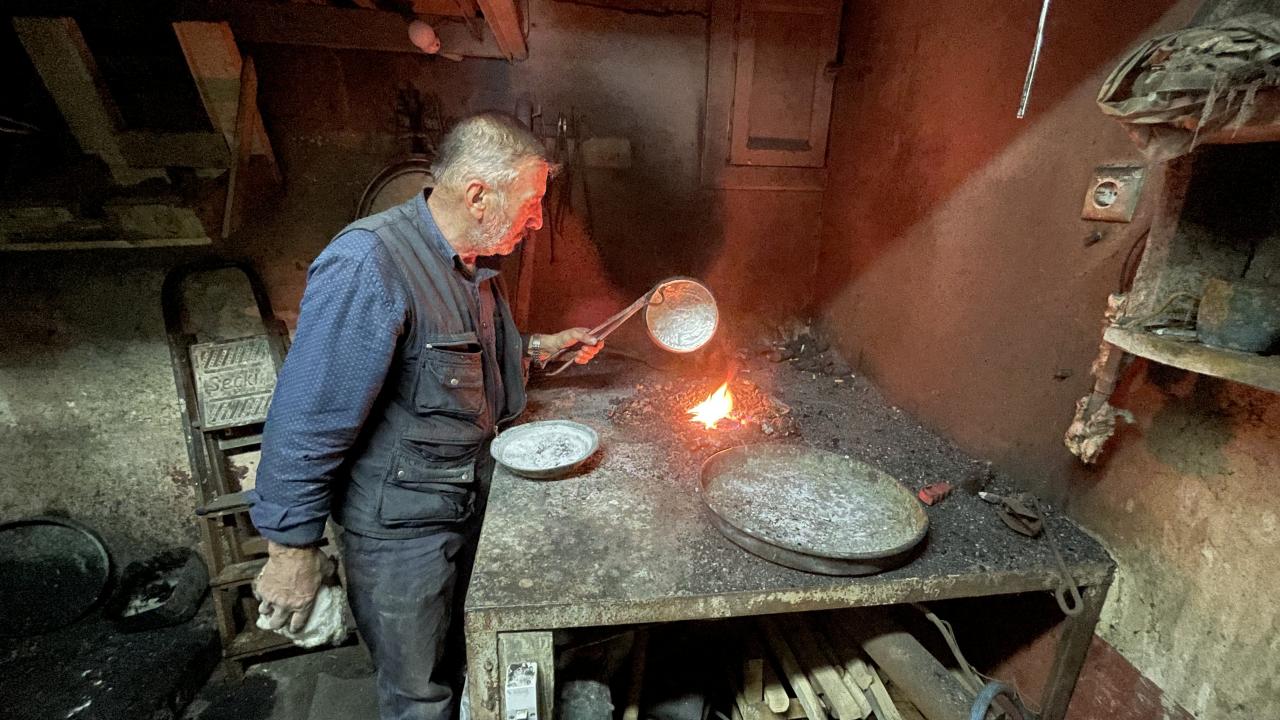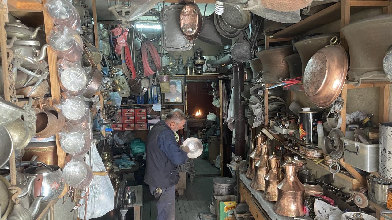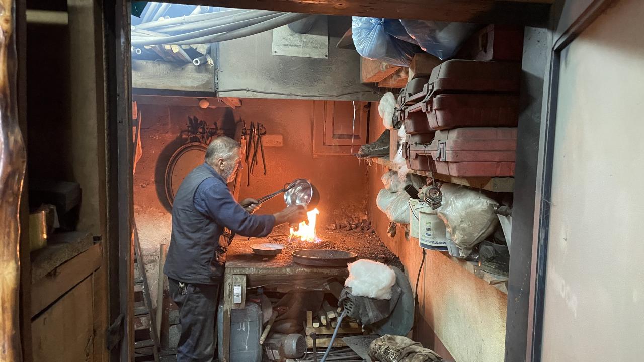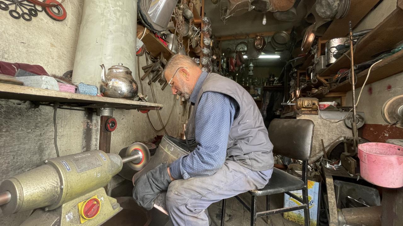 Mesleğini ilk günkü sevgiyle sürdüren Hanefi Sarıkaya, çırak olarak başladığı kalaycılıkta 54 yılı devirdiğini söyledi.