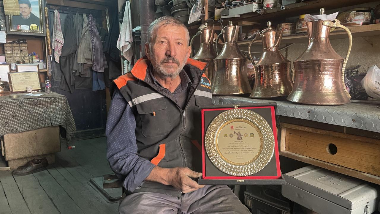 Kentte mesleğini yaşatma gayreti veren son iki kalaycıdan biri olan Sarıkaya, bu yıl Bayburt`ta "yılın ahisi" seçilmenin de mutluluğunu yaşadı.
