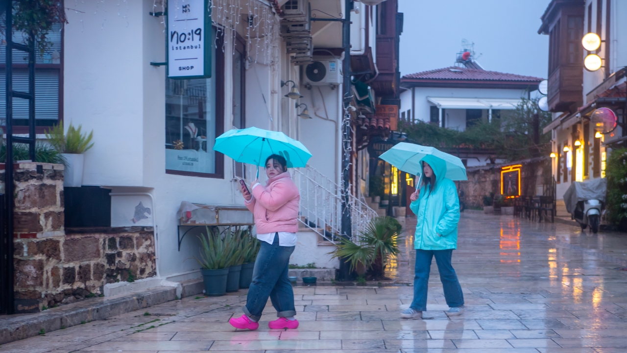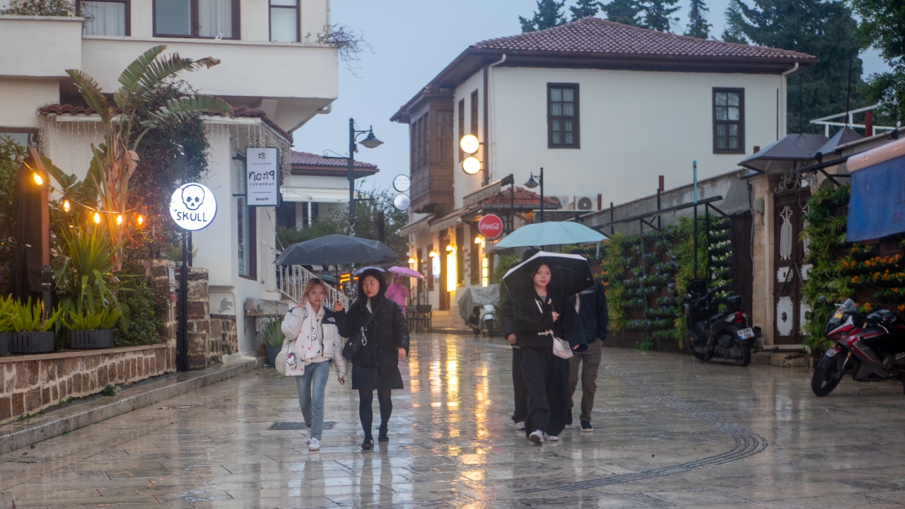 Erken saatlerden itibaren şemsiye ve yağmurluklarıyla Kaleiçi`nin dar sokaklarına dağılan Japon turistler tarihi sokaklara hareket kattı, esnafın yüzünü güldürdü.