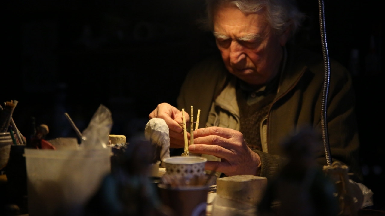 Antalya'da 72 yaşındaki Sadrettin Savaş, unutulmaya yüz tutmuş meslekleri, Kaleiçi'ndeki dükkanında ürettiği minyatür heykellerle yaşatmaya çalışıyor.
