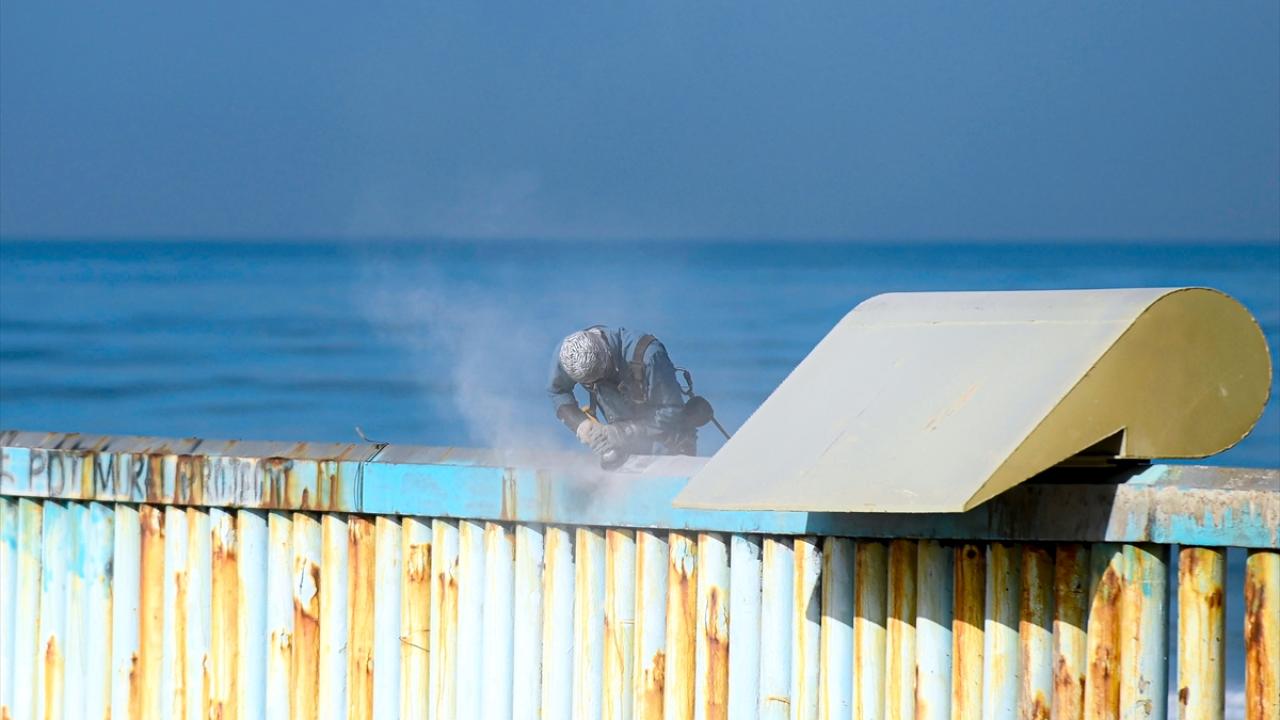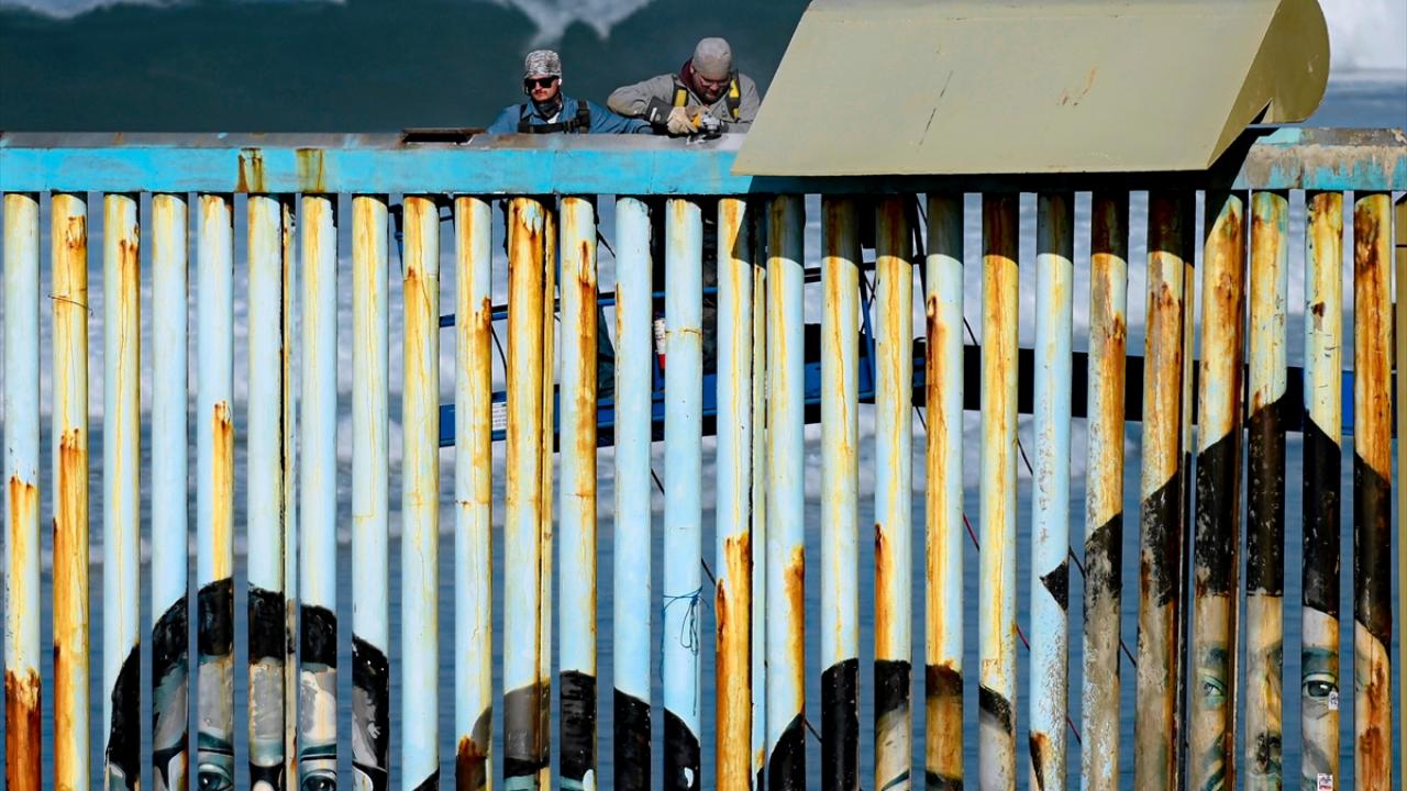 Sınır inşaatında sahil boyunca ve Pasifik Okyanusu`na uzanan 30 metre yüksekliğindeki yeni çitler eklenirken göçmenlerin geçişini durdurmak için çatılara caydırıcı yapıların yerleştirildiği görüldü.