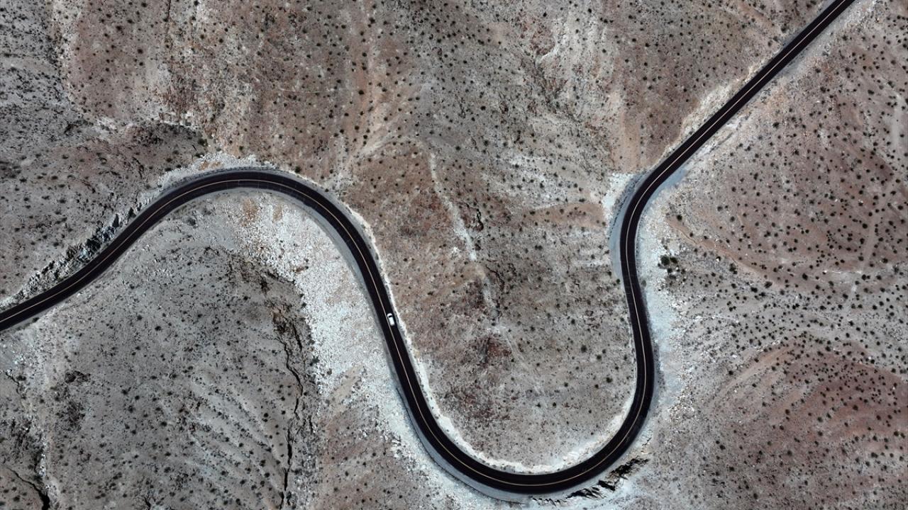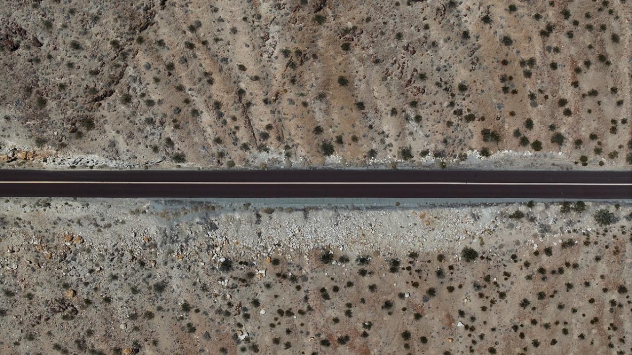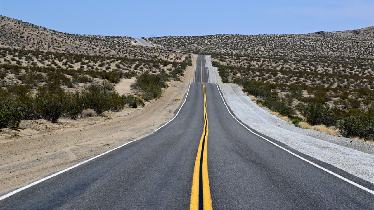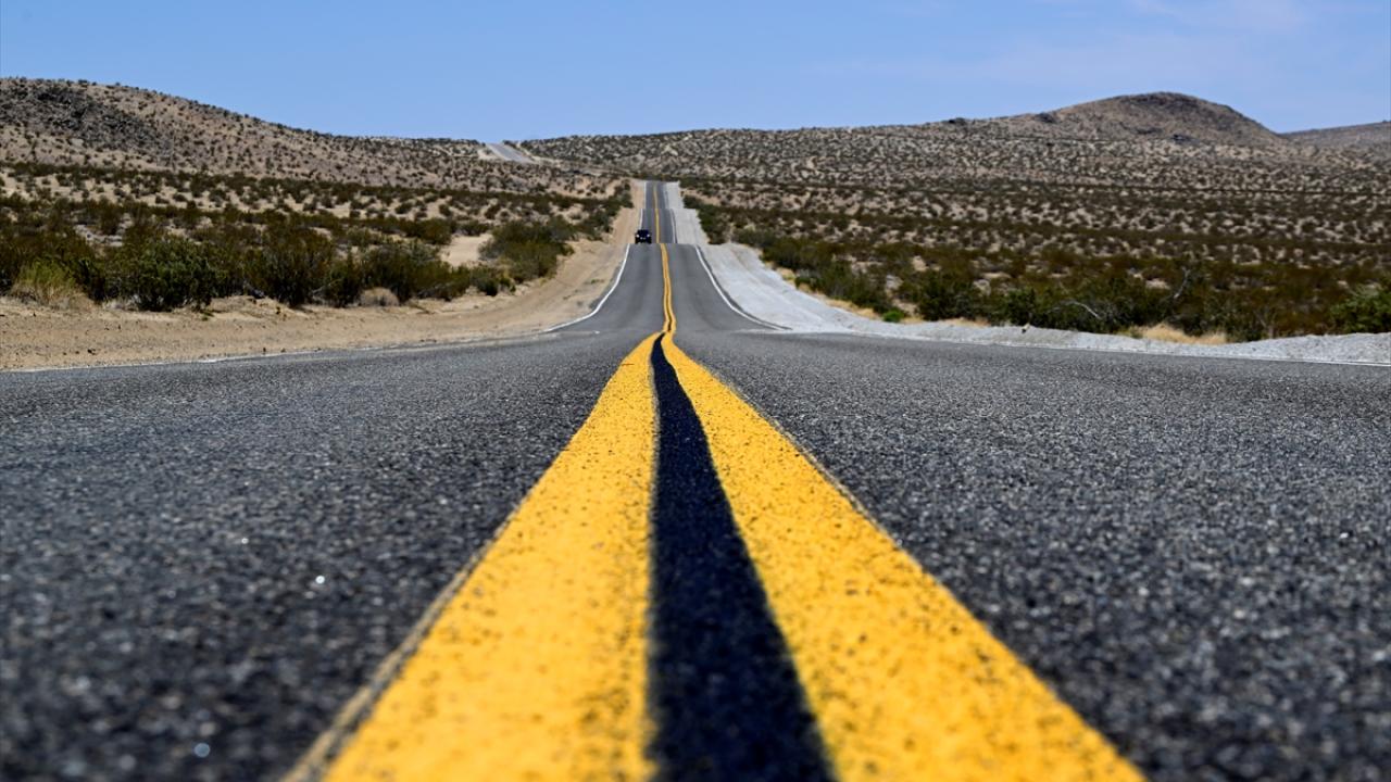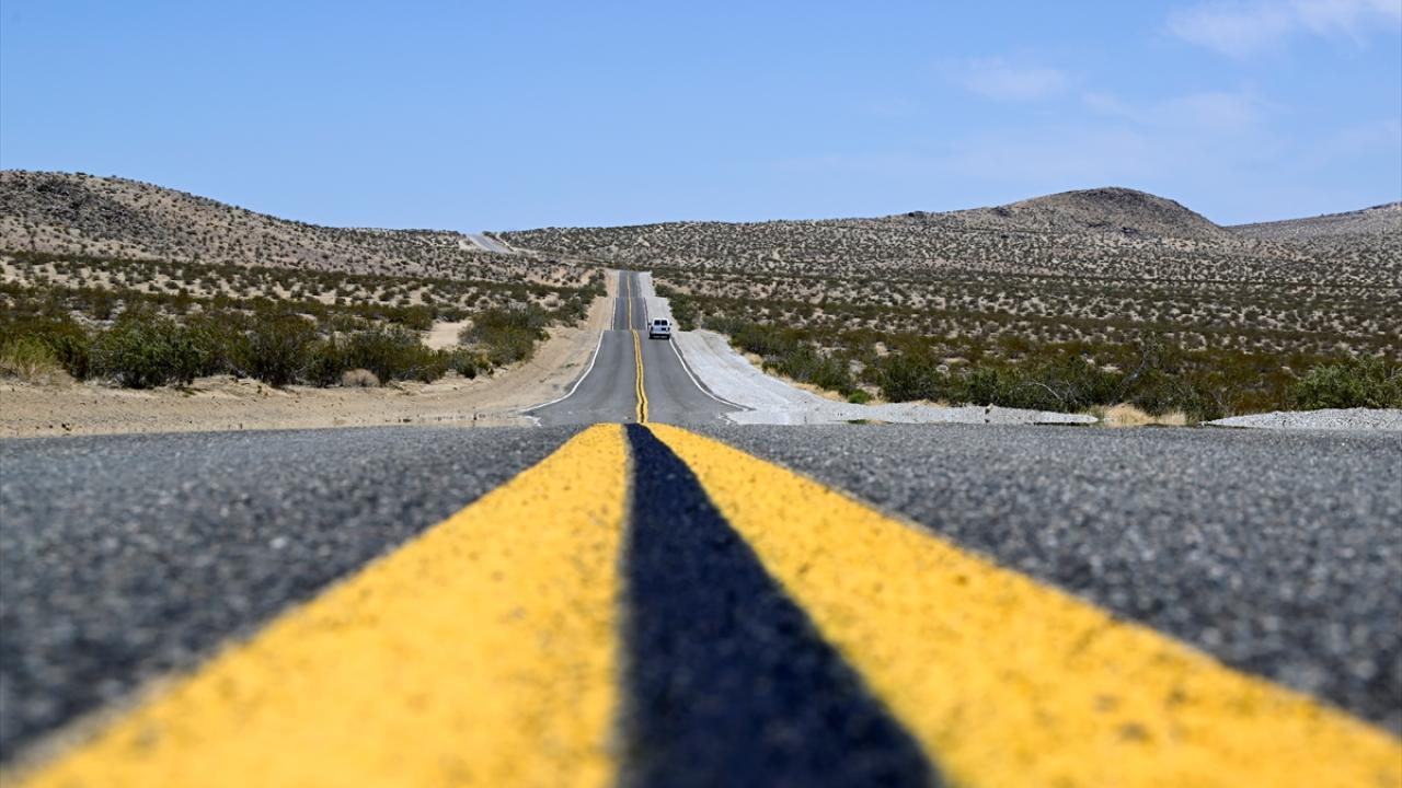 Death Valley yakınlarındaki CA-190 yolu çevresinde sıcak hava etkisini gösteriyor.