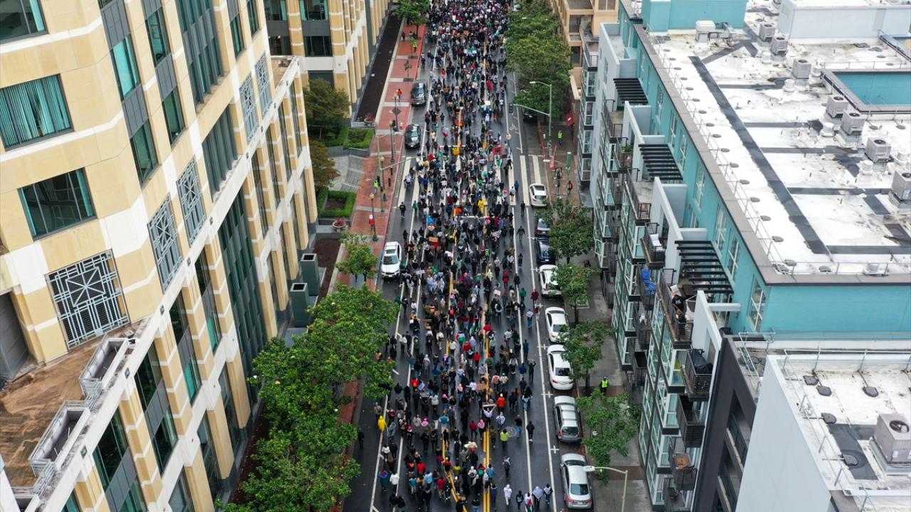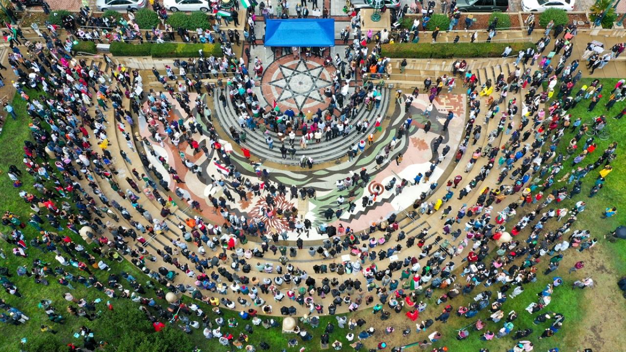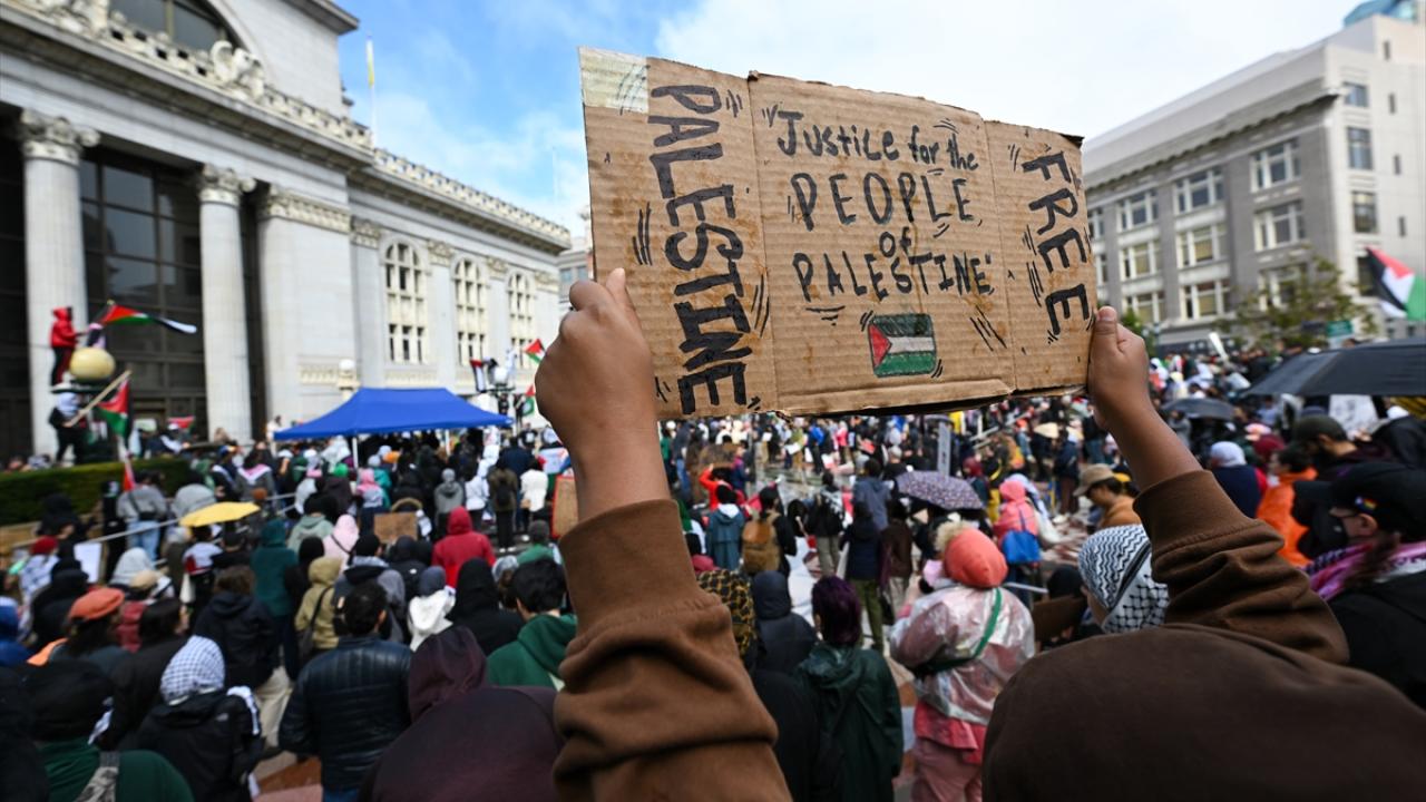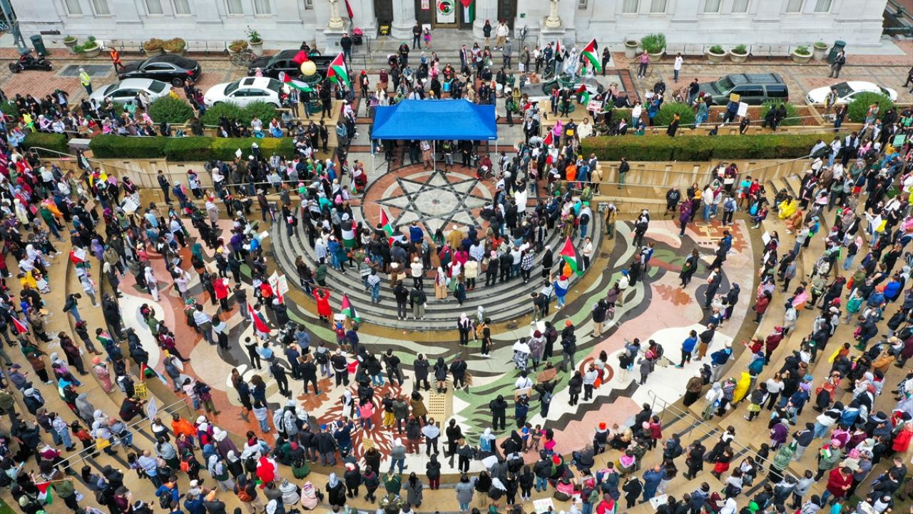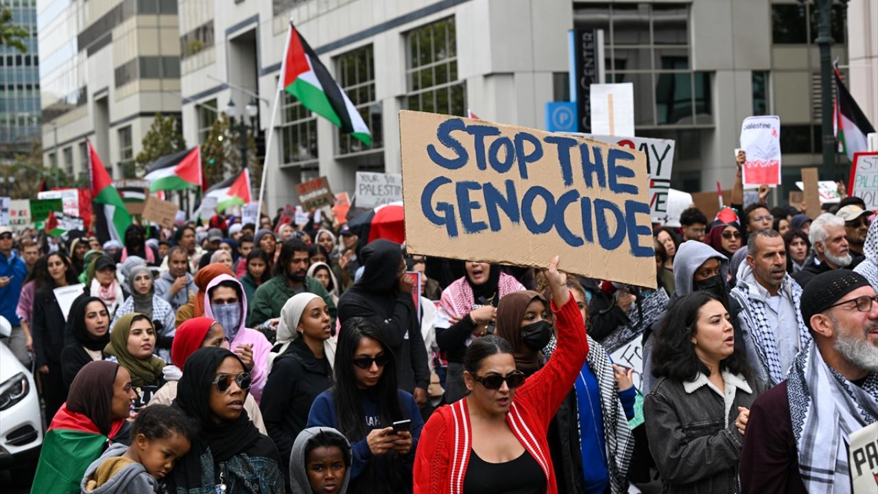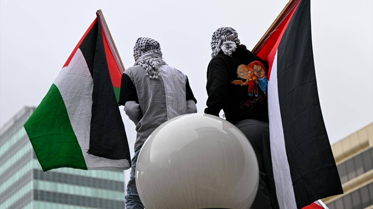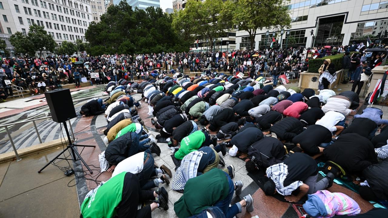 Amerika Birleşik Devletleri'nin Kaliforniya eyaletine bağlı Oakland kentinde yüzlerce kişi, Filistin'e destek vermek amacıyla belediye binası önünde bir araya geldi.