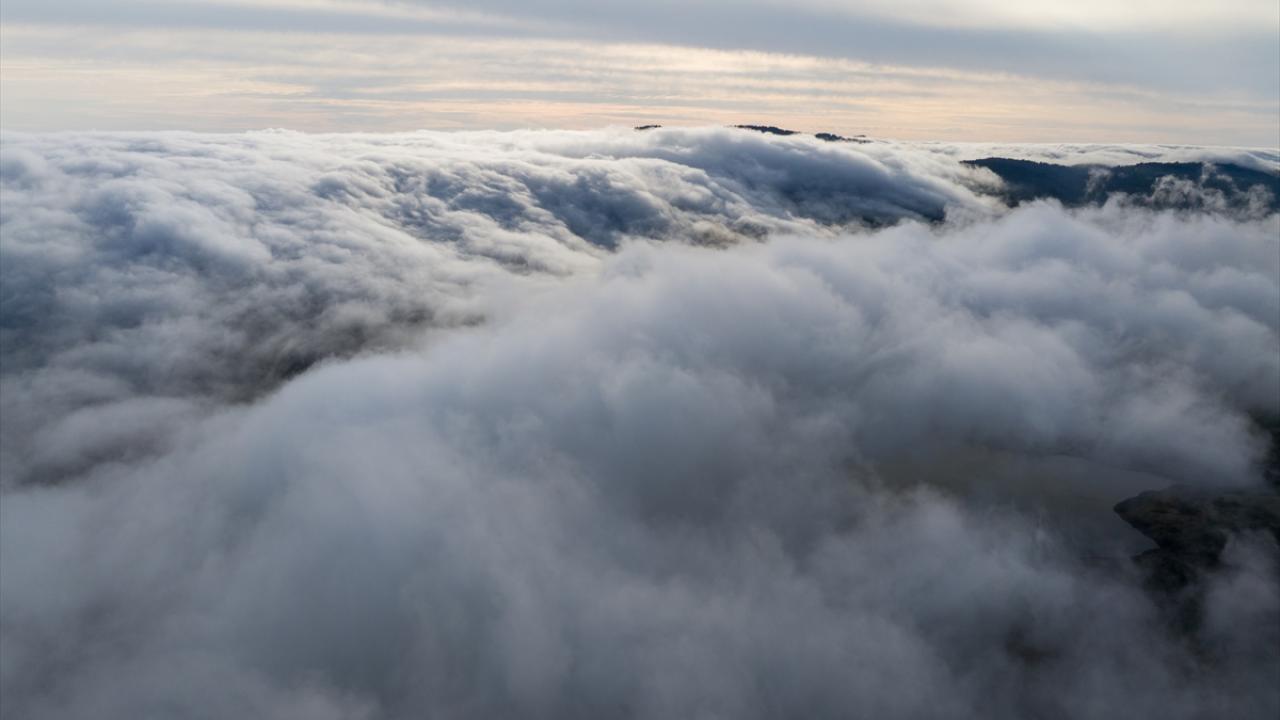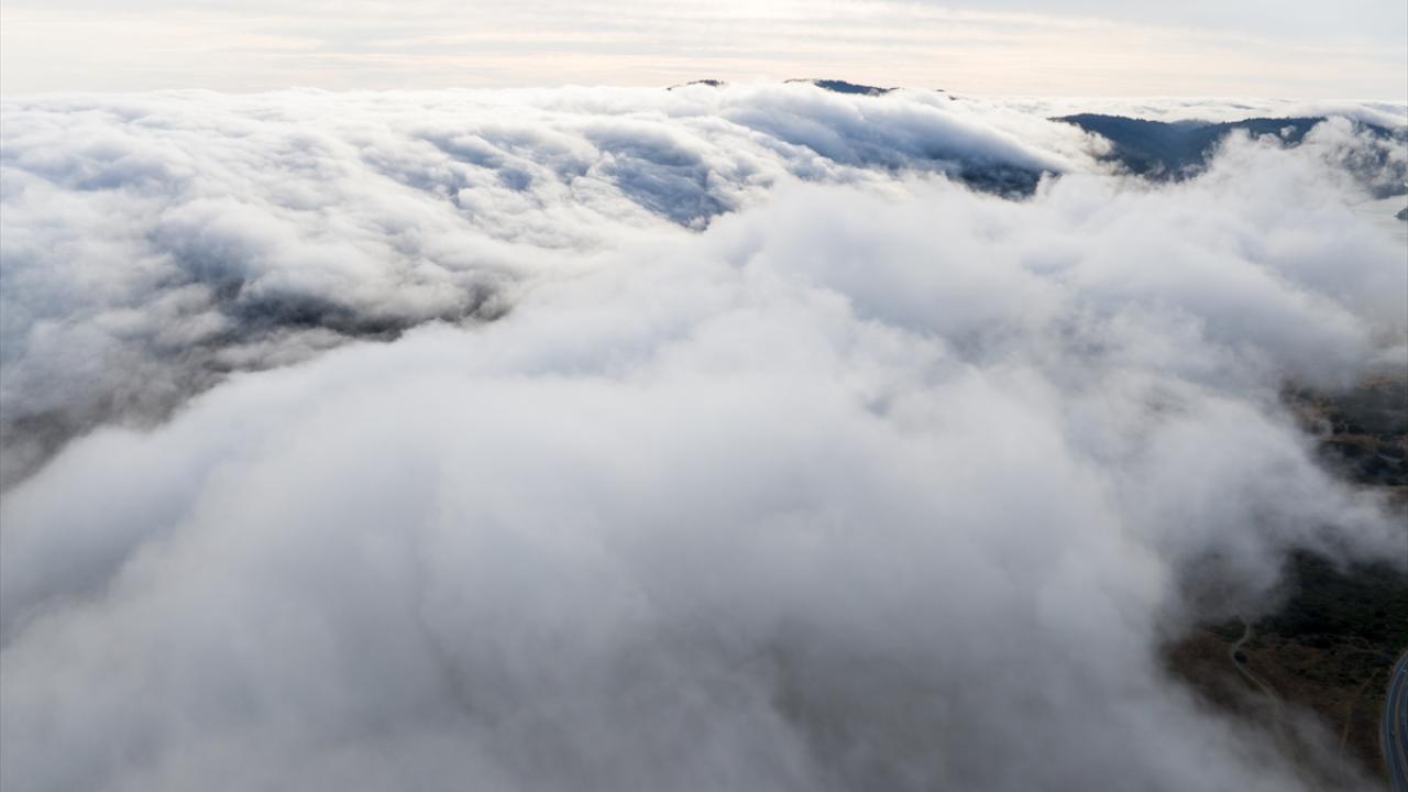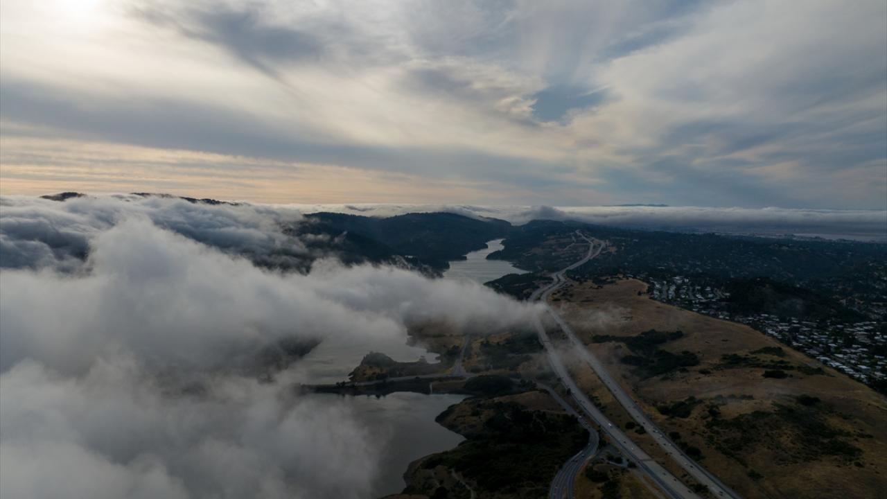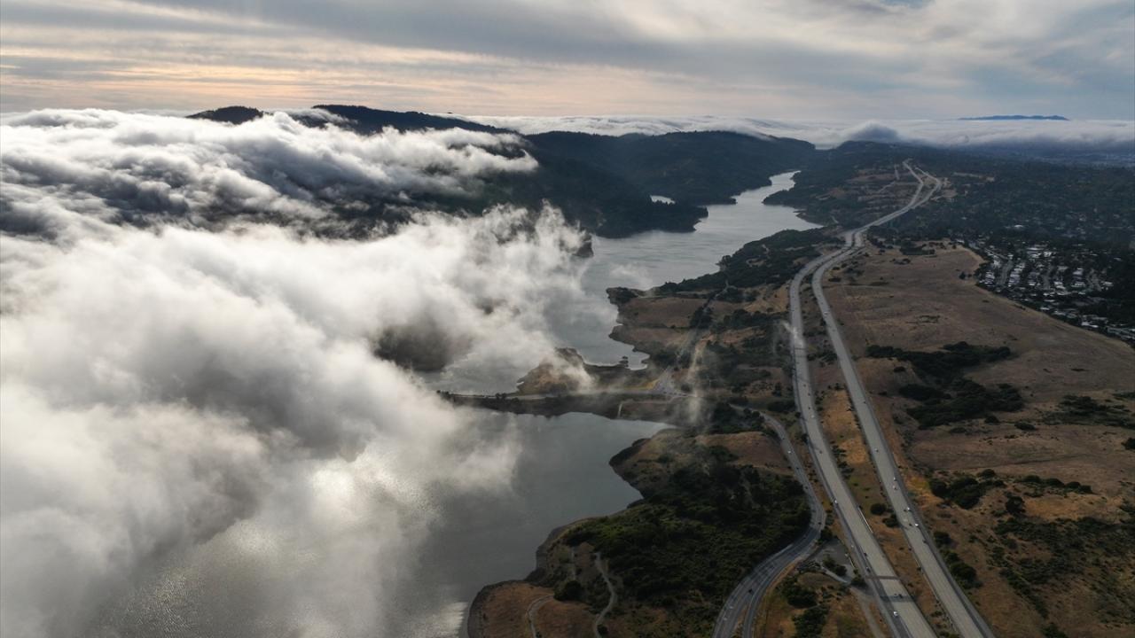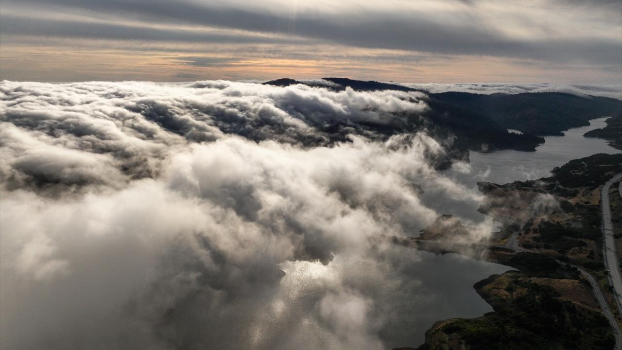 ABD'nin Kaliforniya eyaletine bağlı San Mateo kentinde bulunan Crystal Springs Baraj Gölü ve çevresindeki dağları kaplayan yoğun sis tabakaları etkileyici görüntüler oluşturdu.