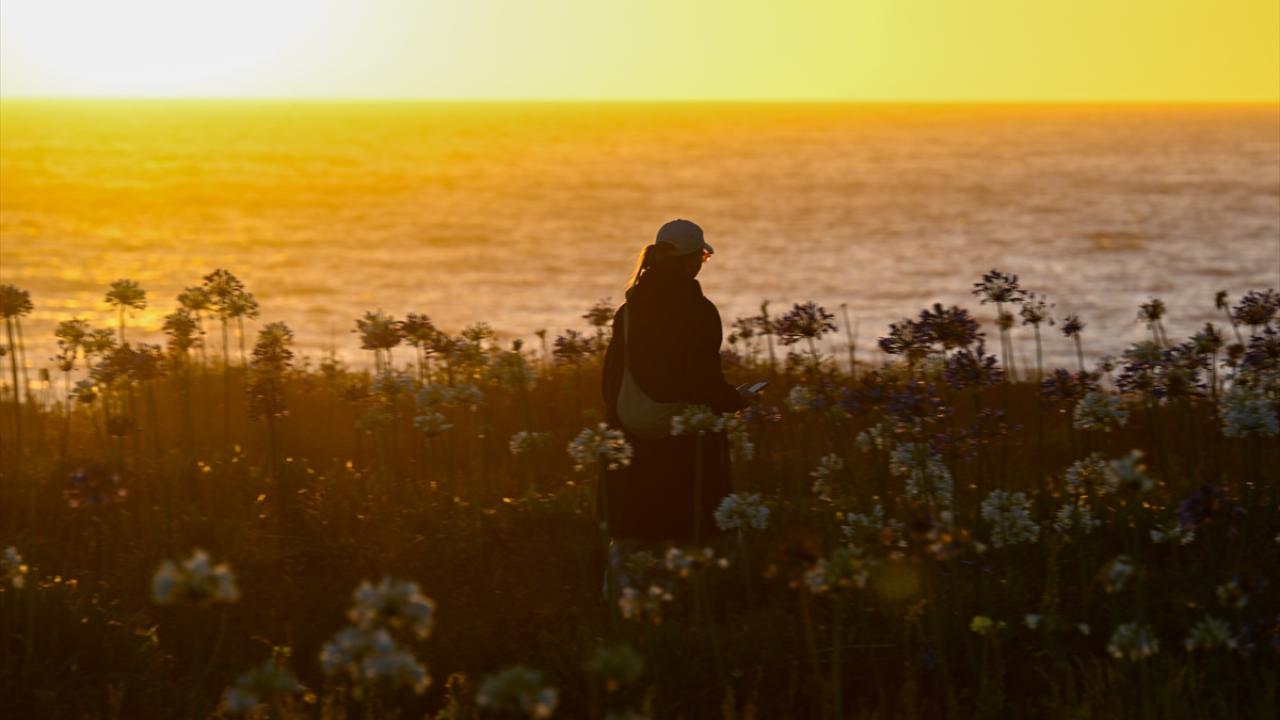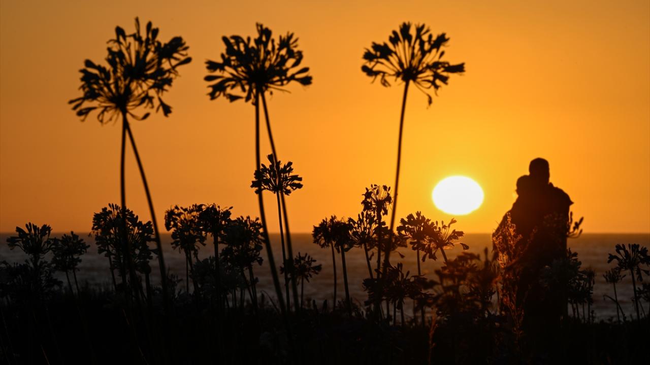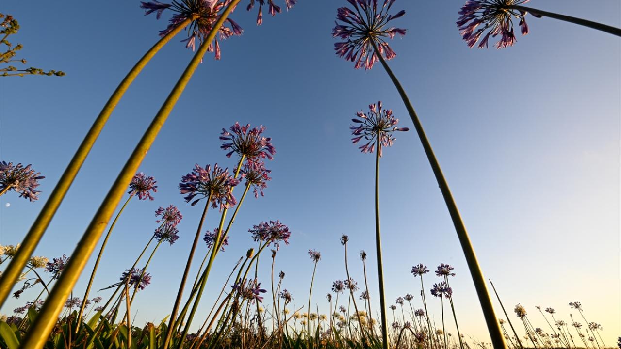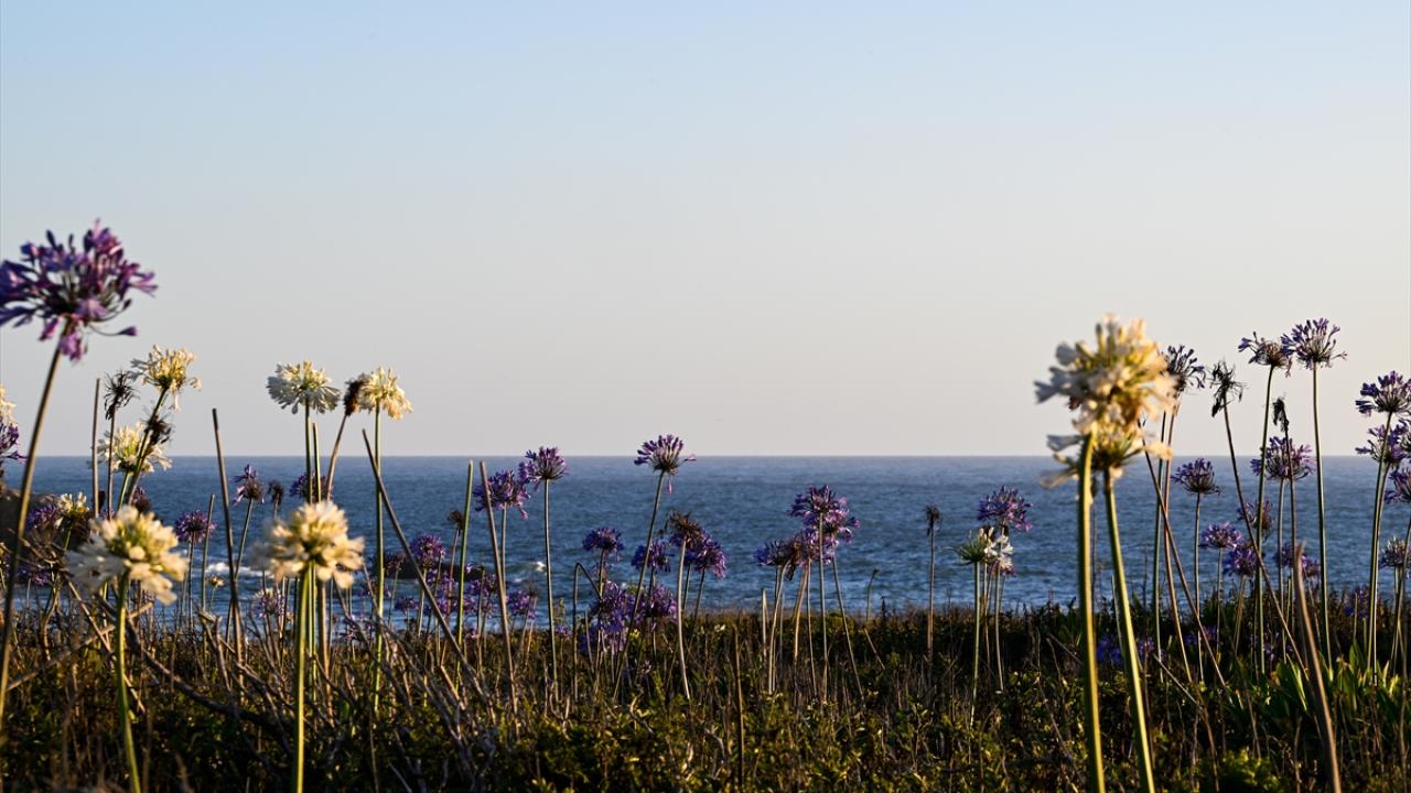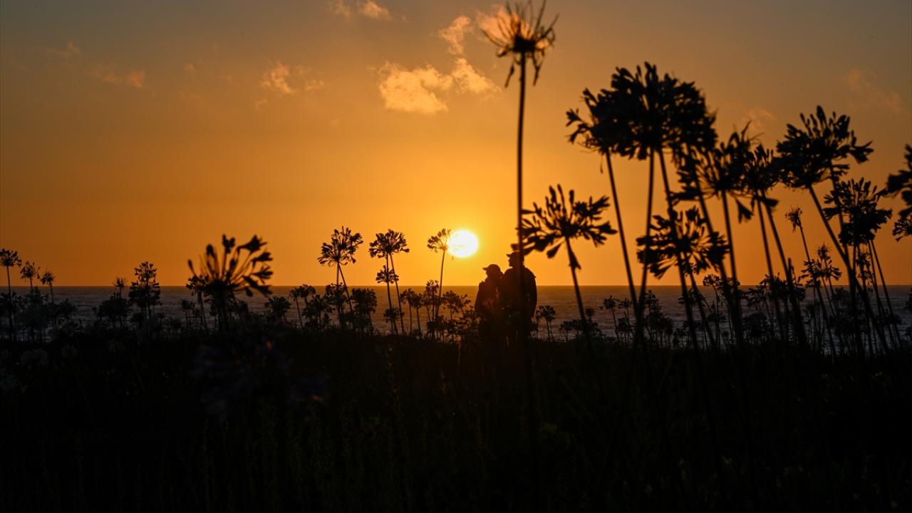ABD'nin California eyaletinde, Pasifik kıyı şeridi boyunca uzanan Montara Eyalet Plajı'nda Nil Zambakları (Agapanthuses) gün batımında güzel bir görüntü oluşturdu.