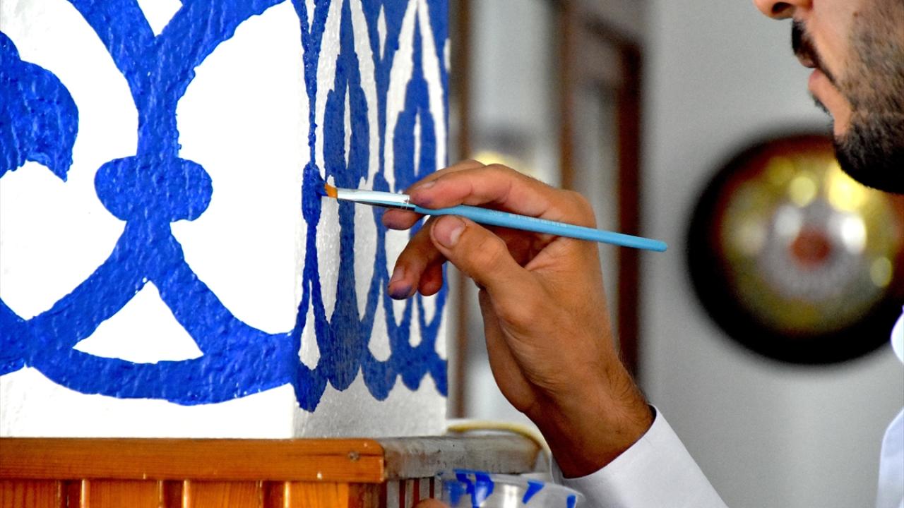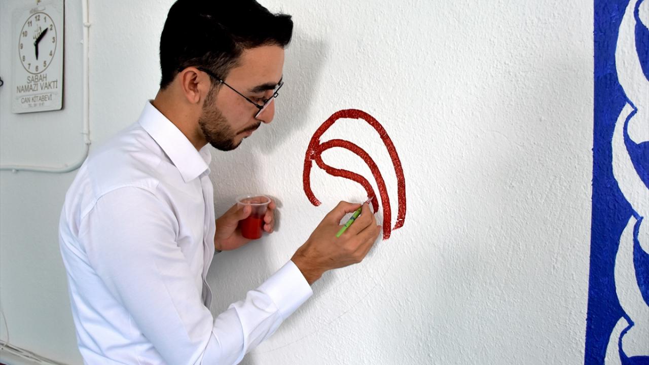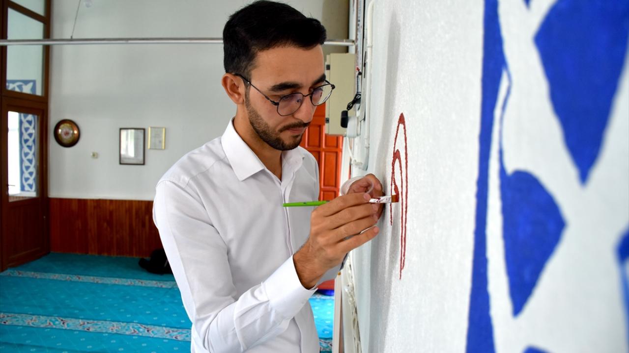 Aksaray'da kaligrafi (elle güzel yazı yazma) sanatçısı imam hatip Hasan Hüseyin Altan, eline aldığı fırça ve boyalarla cami duvarlarına Selçuklu ve Osmanlı motiflerini işliyor.