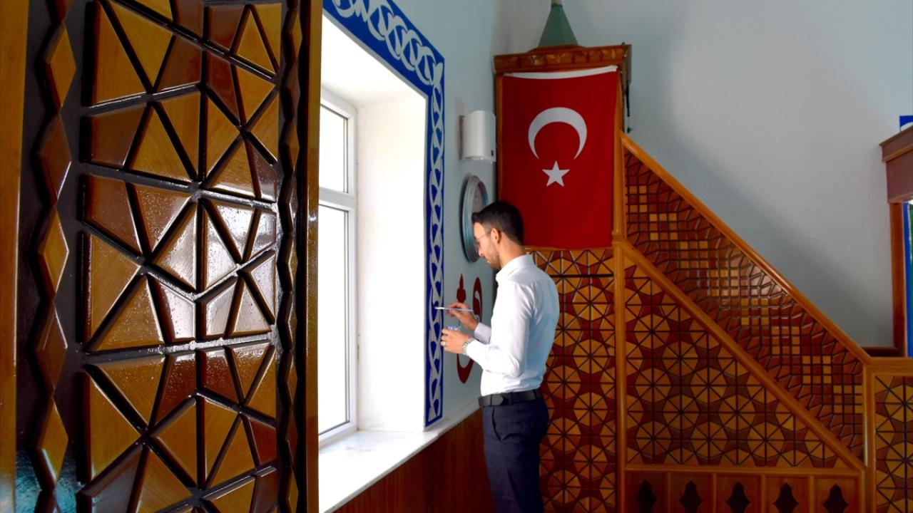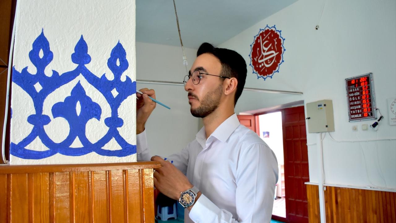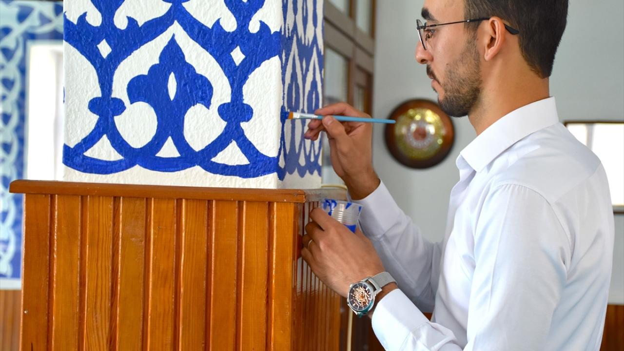 İmam hatip olarak 2022`de Aksaray Yeşiltömek köyü Meydan Camisi`ne atanan Altan, eline aldığı fırça ve boyalarla cami duvarlarına Selçuklu ve Osmanlı motiflerini işliyor.