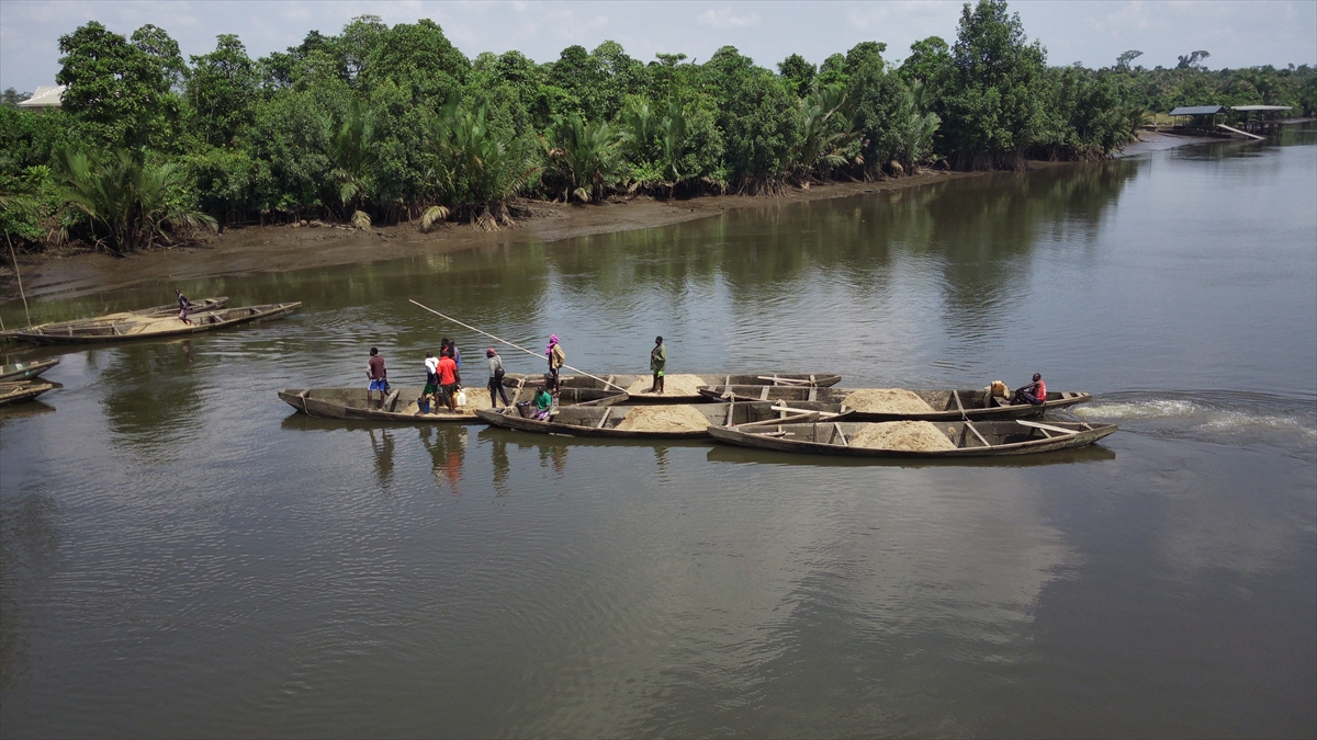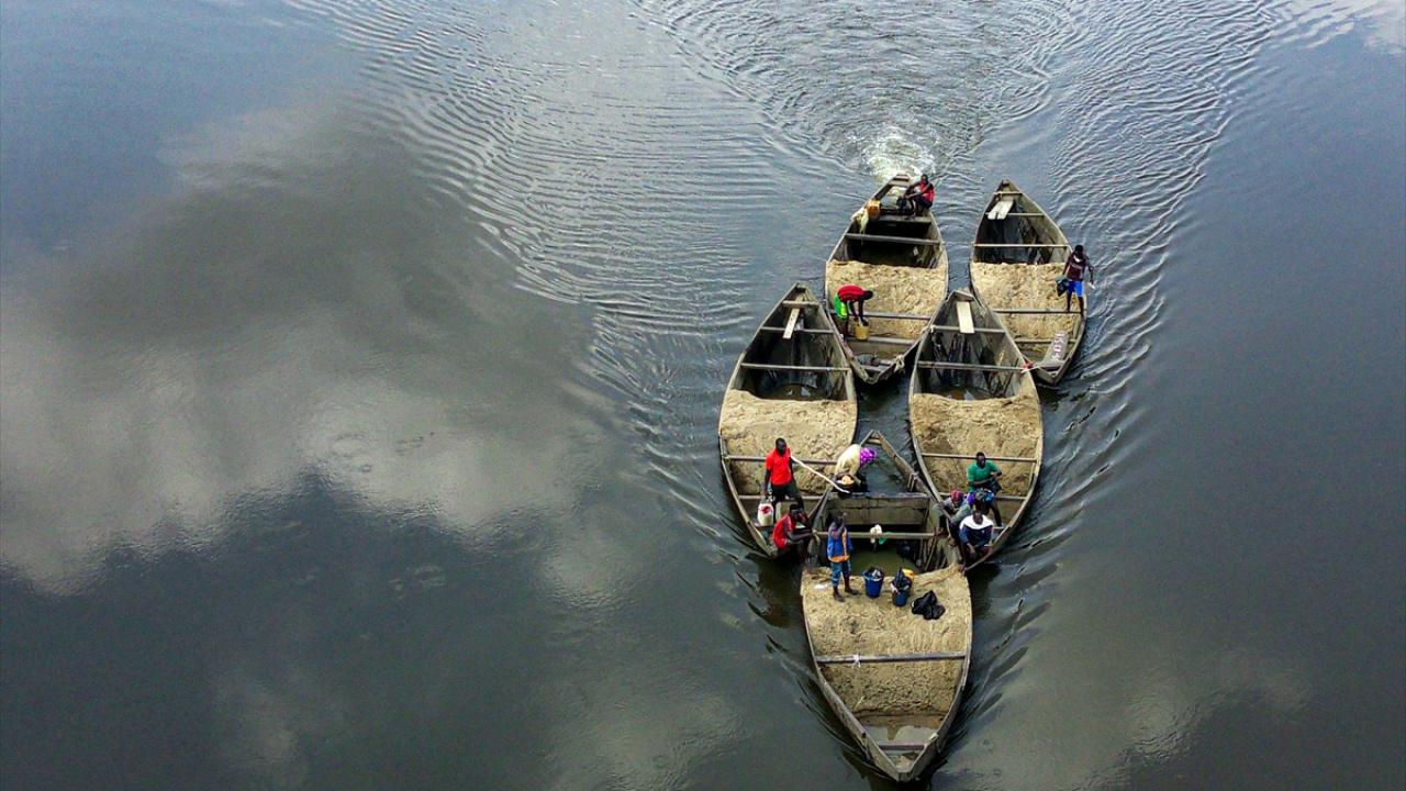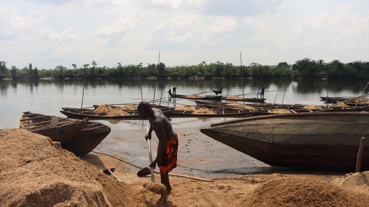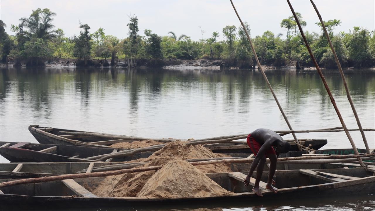 İşsizlik oranının yüzde 30`ları aştığı ülkede, kum çıkarma işlemi için el yapımı ve güvenli olmayan kanolar kullanılıyor.