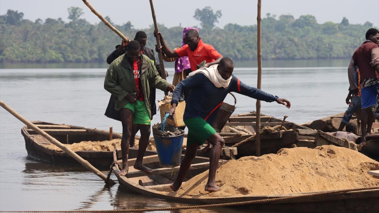 İnşaat sektöründe kullanılan kumun karşılanması için yürütülen çalışmalarda Kamerunlu gençler, zorlu ve tehlikeli şartlar altında, 1000 kilometreyi aşan Sanaga Nehri`nin tabanından kum çıkartarak geçimlerini sağlamaya çalışıyor.