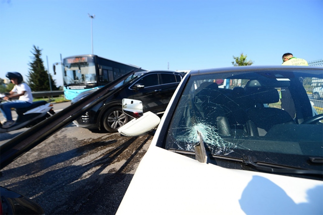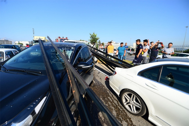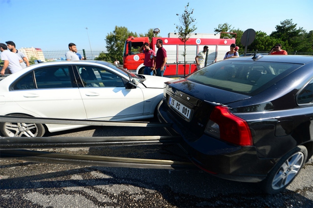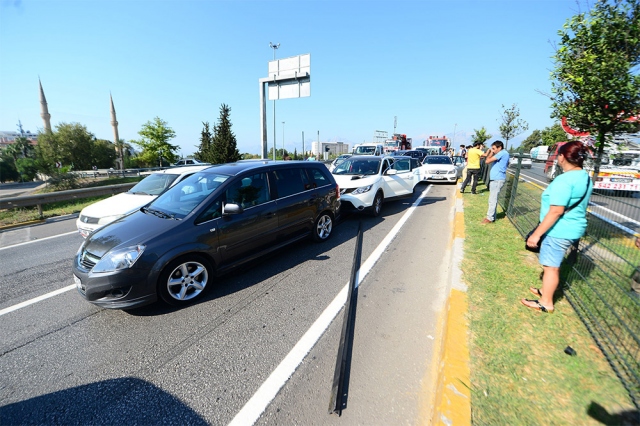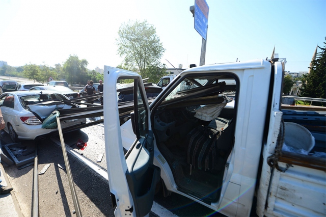 Antalya'da bir kamyonet ve 8 otomobilin karıştığı trafik kazasında, kamyonetteki 5 metrelik demir çubuklar önünde bulunan 3 otomobile saplandı.
