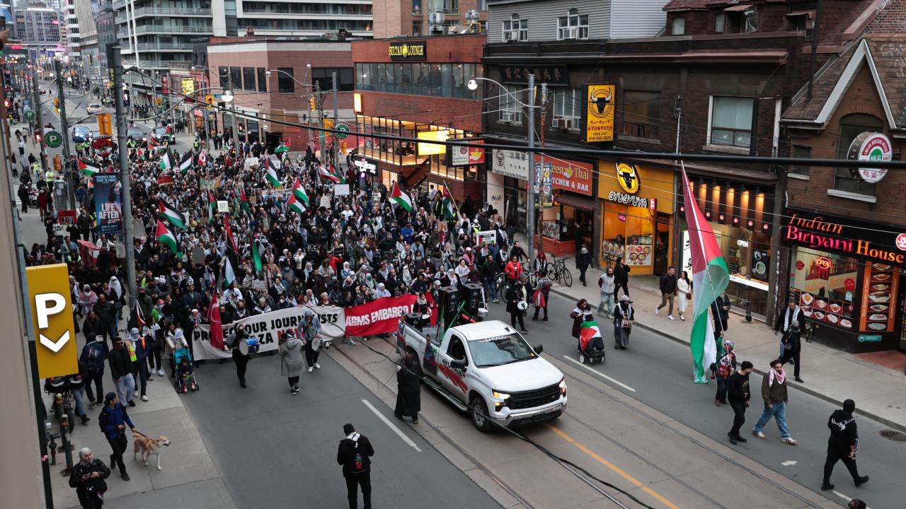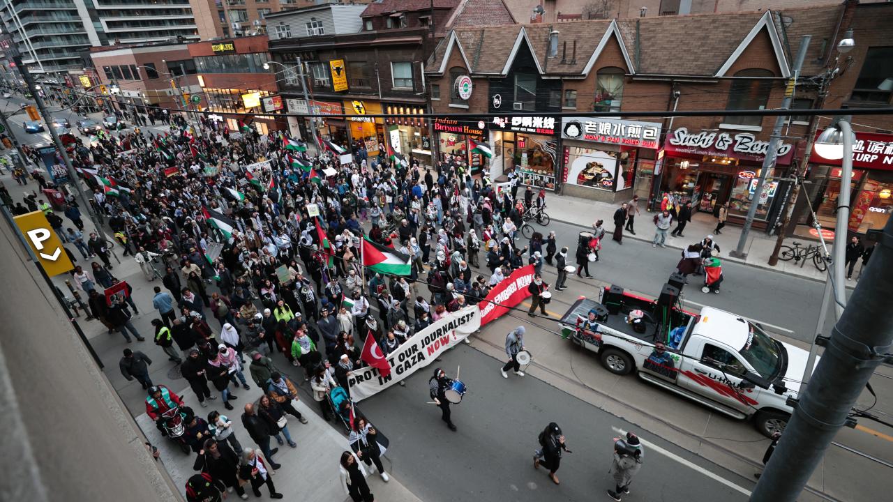 Kanada'nın Toronto kentinde Filistin'e destek gösterisi düzenlendi. Binlerce Filistin yanlısı gösterici, pankartlar taşıyıp sloganlar atarak şehir merkezinde yürüyüş gerçekleştirdi.