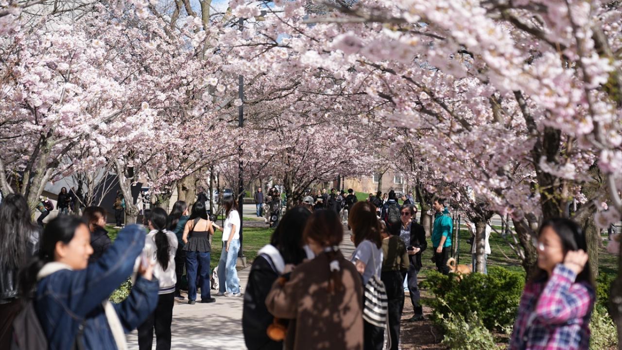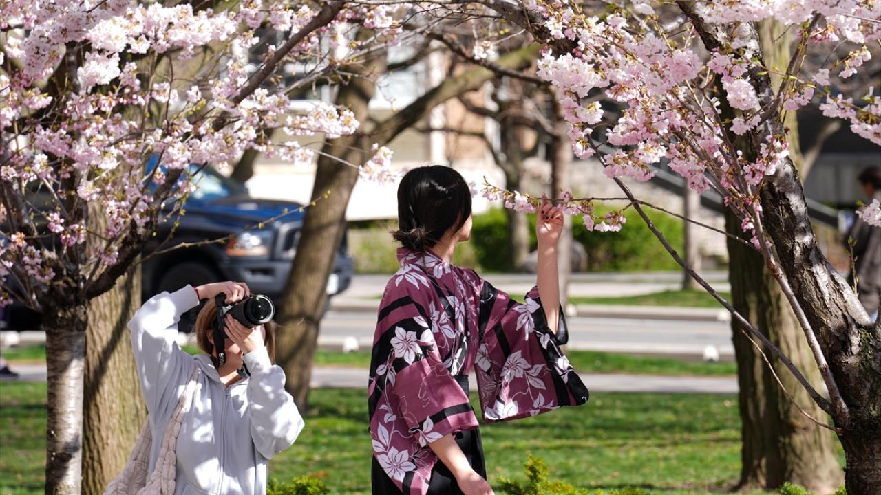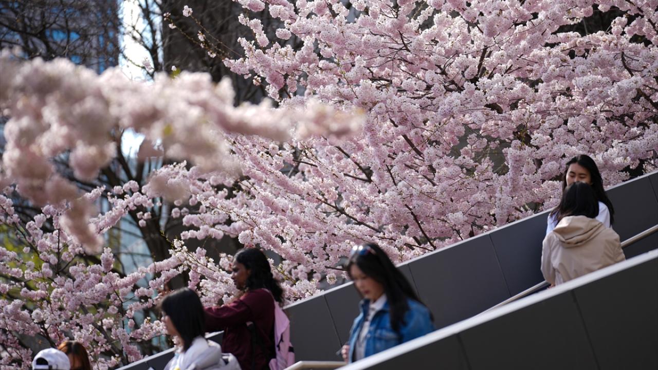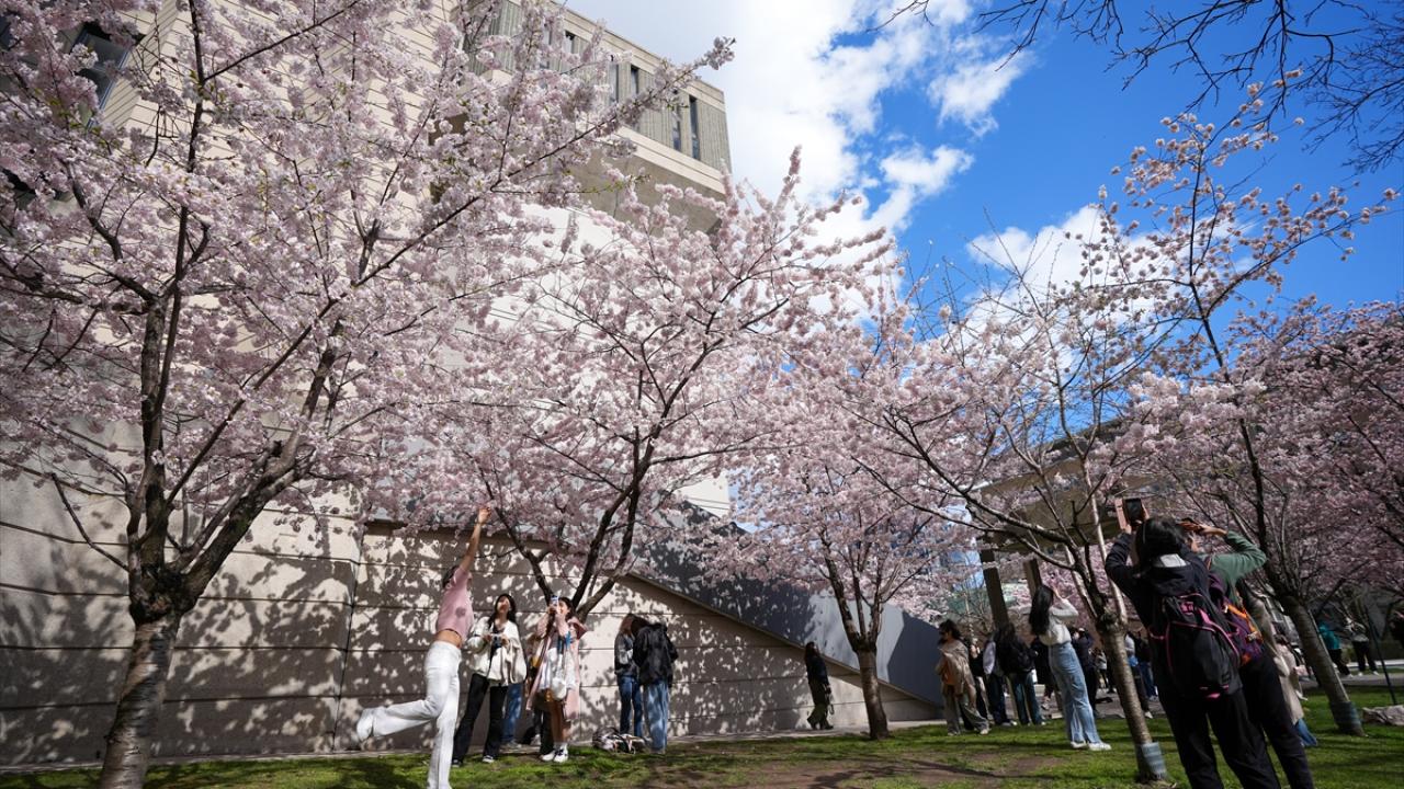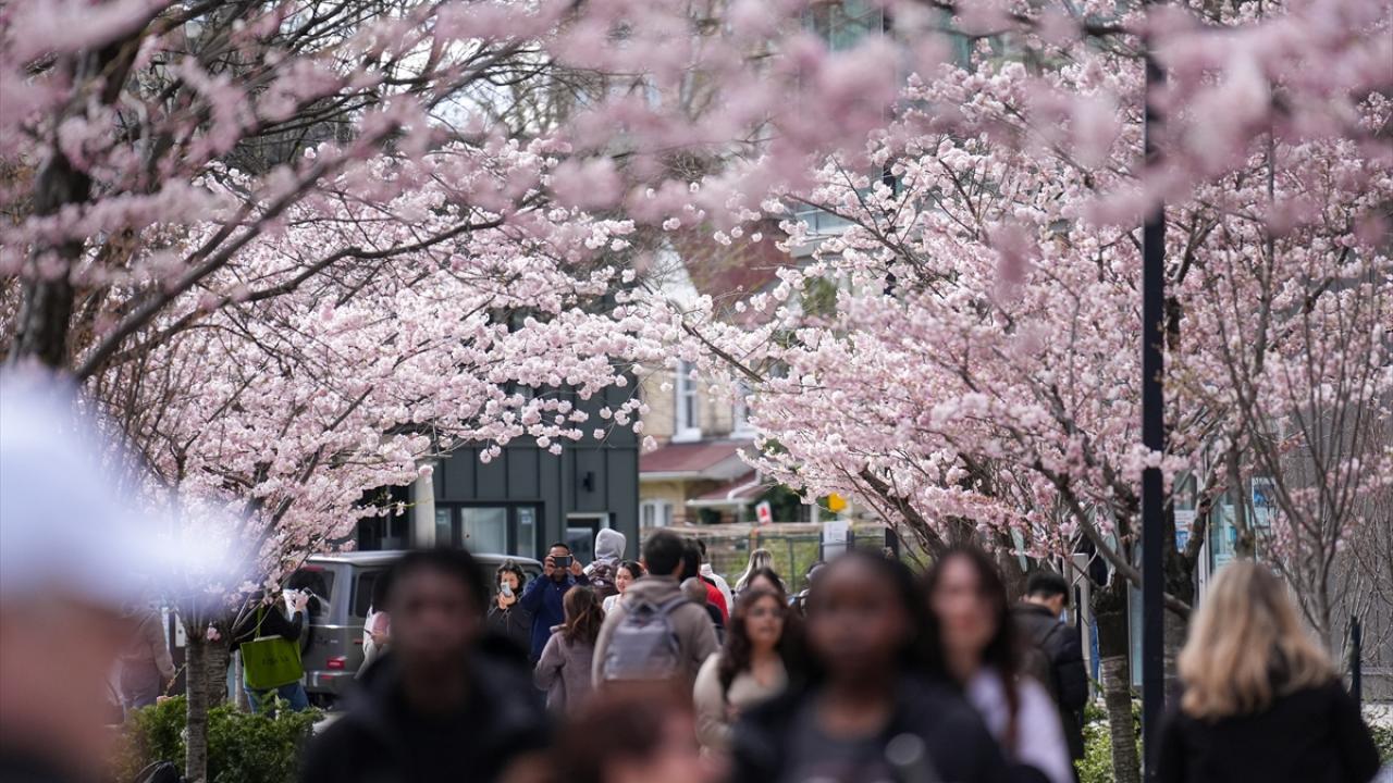 Kanada’nın Toronto kentinde baharın gelmesiyle birlikte Robarts Kütüphanesi önündeki parkta çiçek açan Japon Kirazı ağaçları güzel görüntüler oluşturdu.