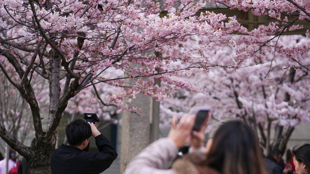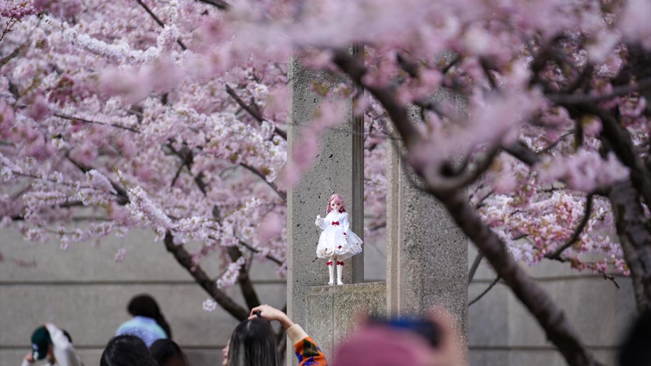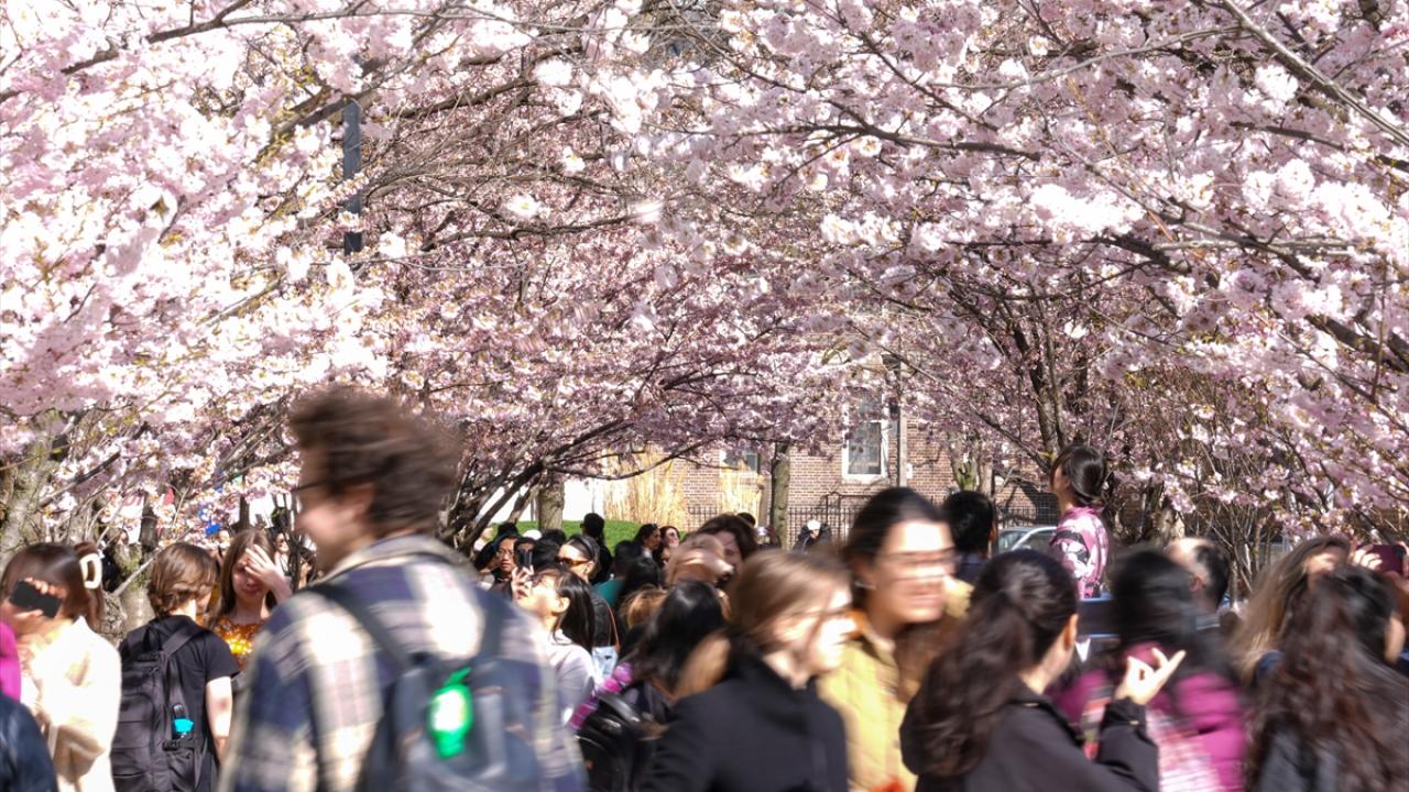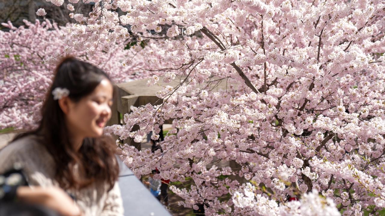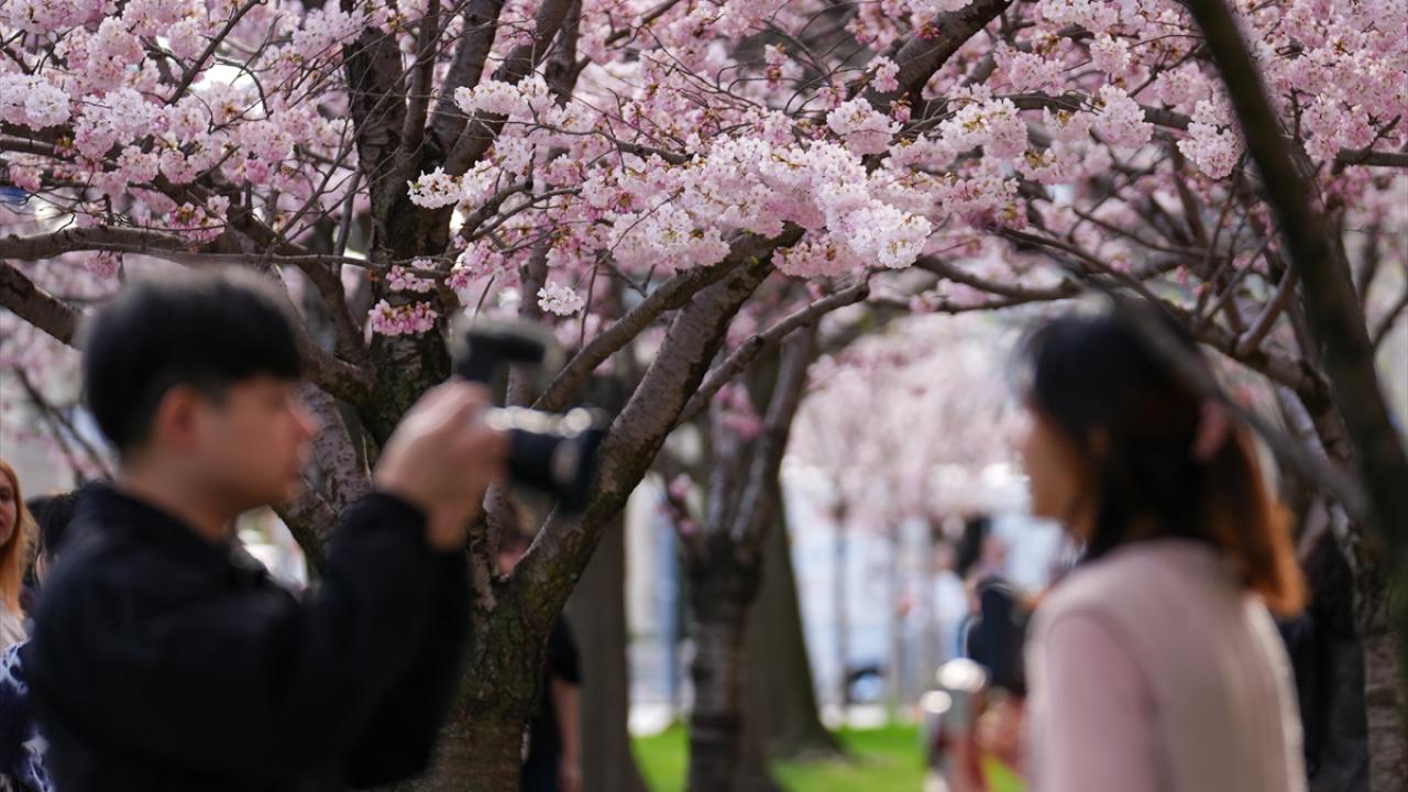 Kanada’nın Toronto kentinde baharın gelmesiyle birlikte Robarts Kütüphanesi önündeki parkta çiçek açan Japon Kirazı ağaçları güzel görüntüler oluşturdu.