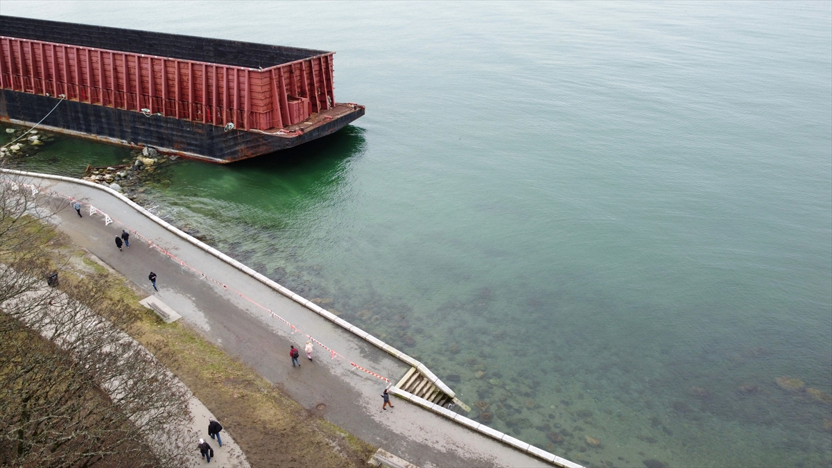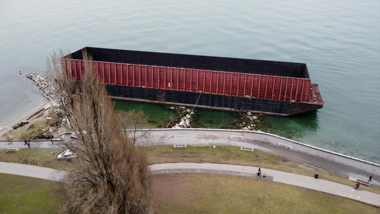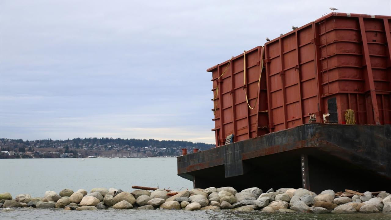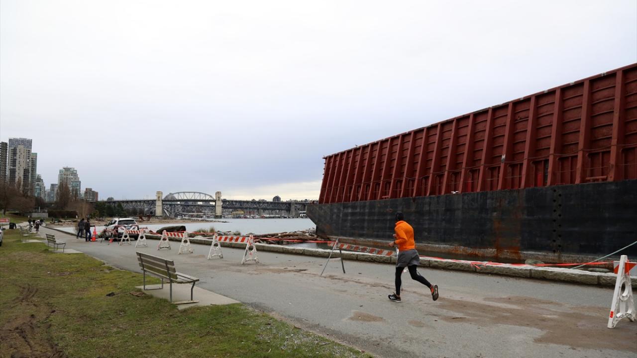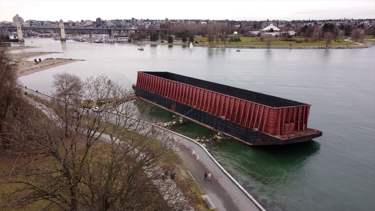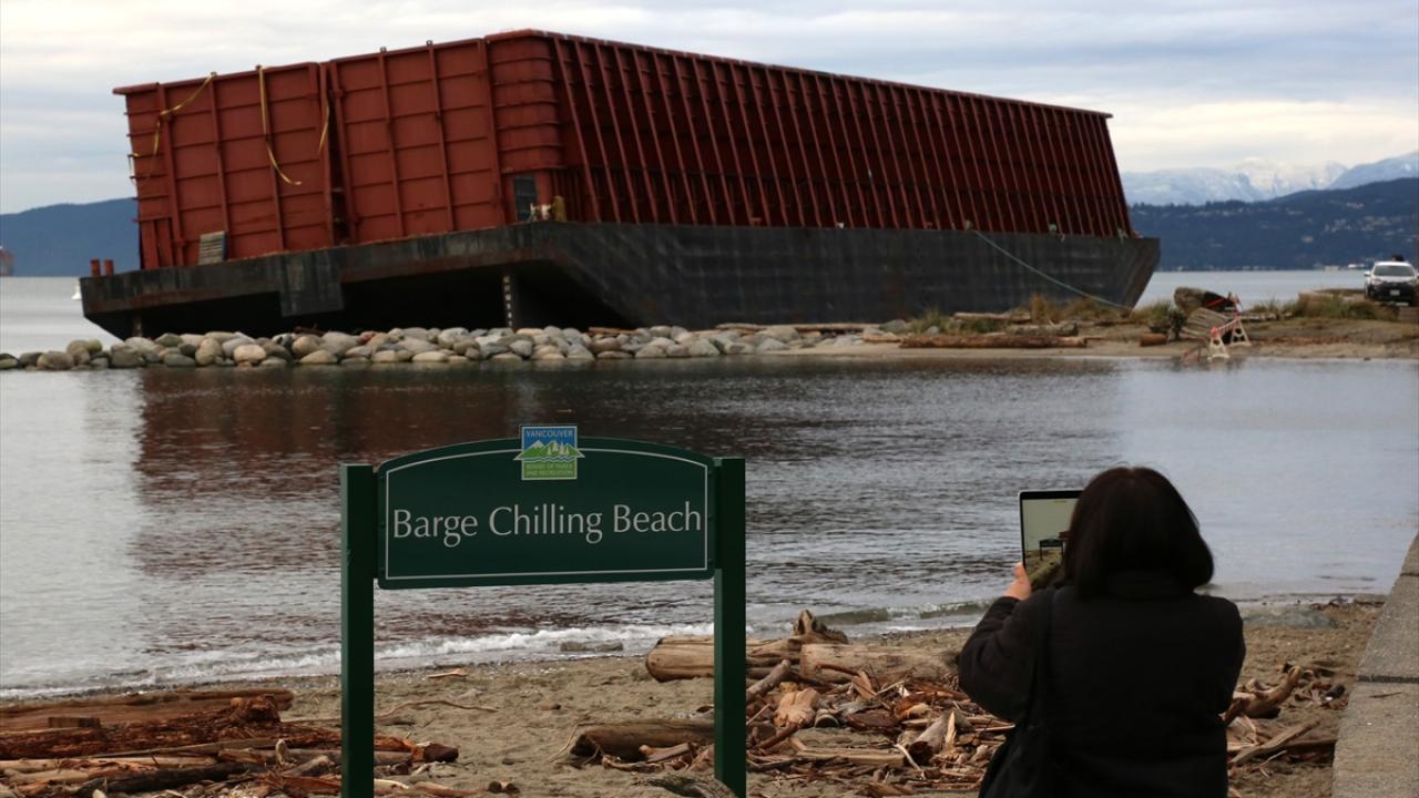 Kanada'nın güneybatısındaki British Columbia eyaletinde 13-15 Kasım tarihlerinde etkili olan yoğun yağışların yol açtığı sel ve fırtına nedeniyle bir yük gemisi, demirlendiği alandan serbest kaldıktan sonra sahile vurdu.