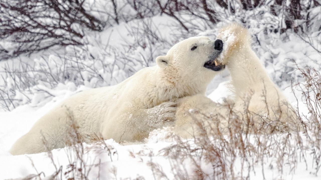 Kanada'nın Manitoba eyaletinin Churchill kentinde kutup ayıları oyun oynarken görüntülendi.