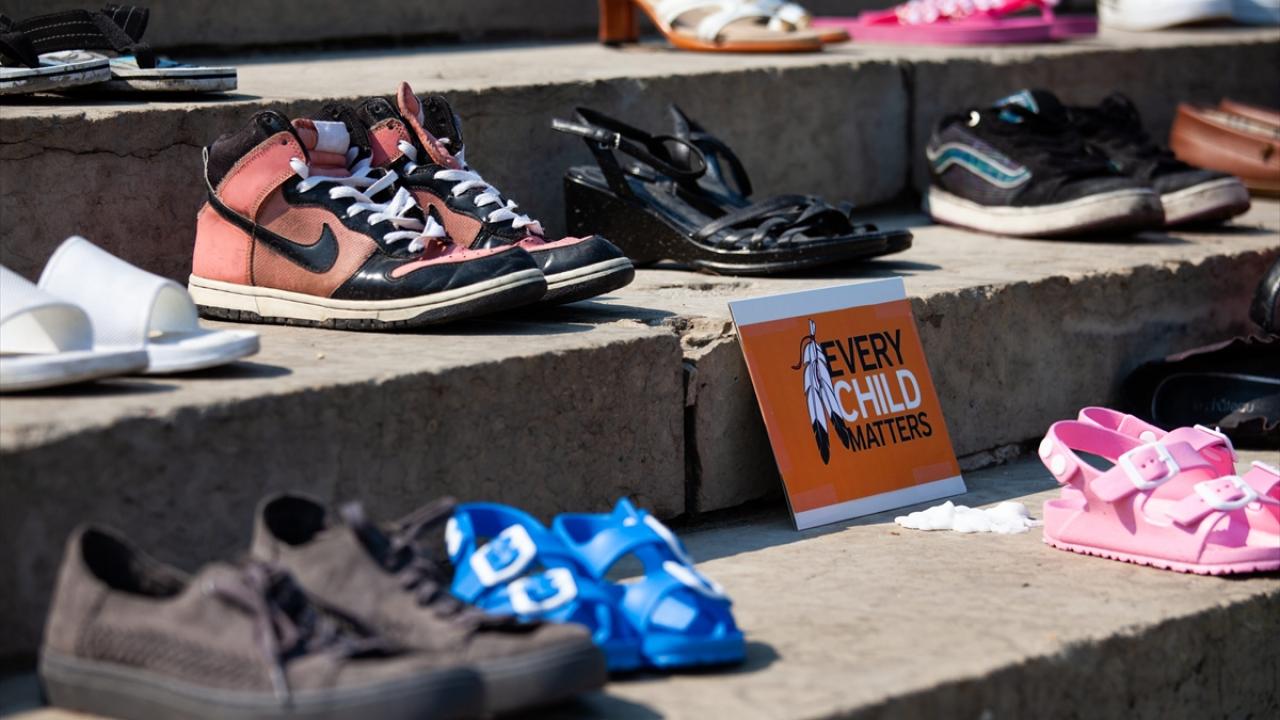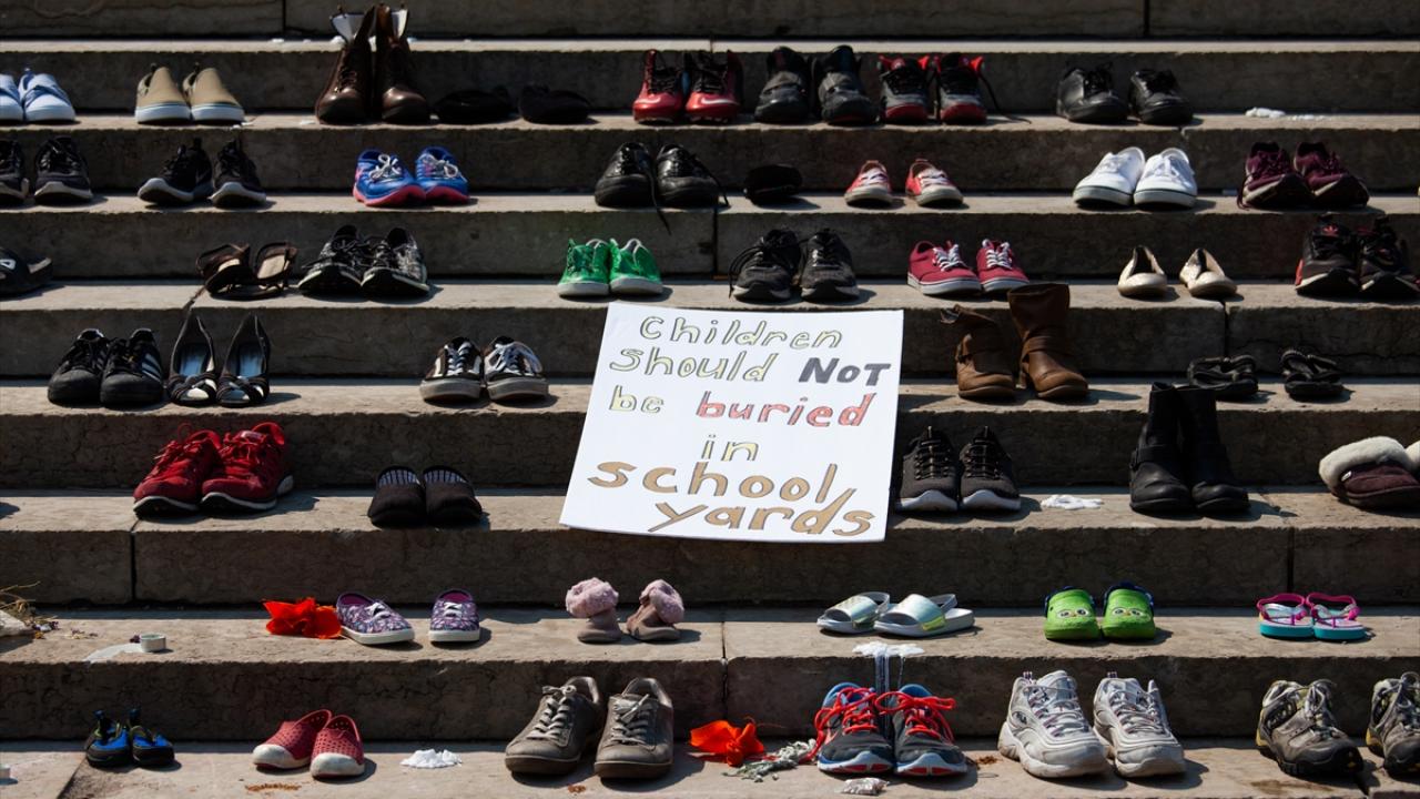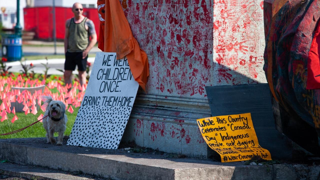 Yerli halka yönelik yapılanlara karşı tepki gösteren protestocular, Kanada Günü’nde düzenlenen miting sırasında, "Her Çocuk Önemlidir" ve "Bir zamanlar çocuktuk" sloganları atıldı.