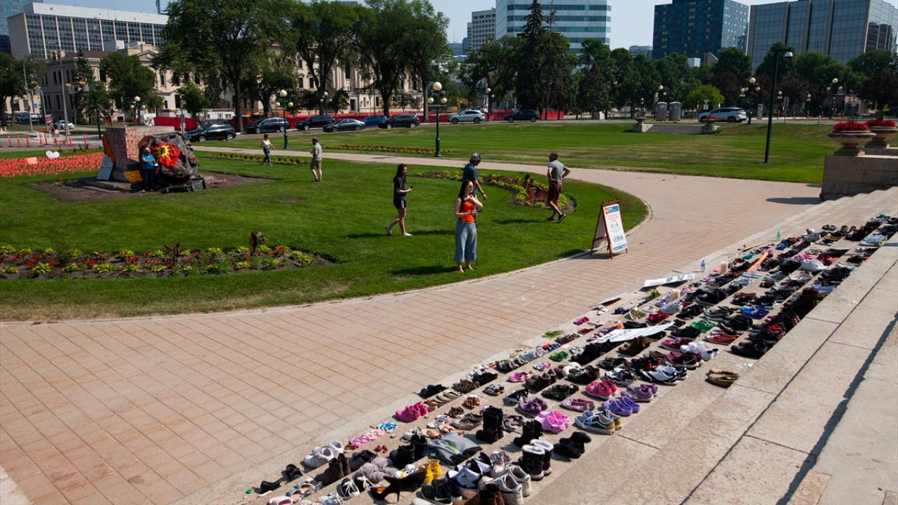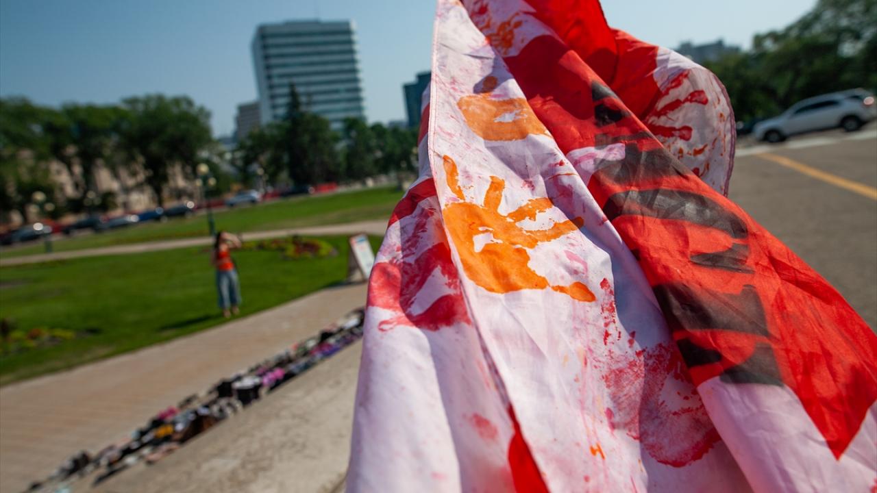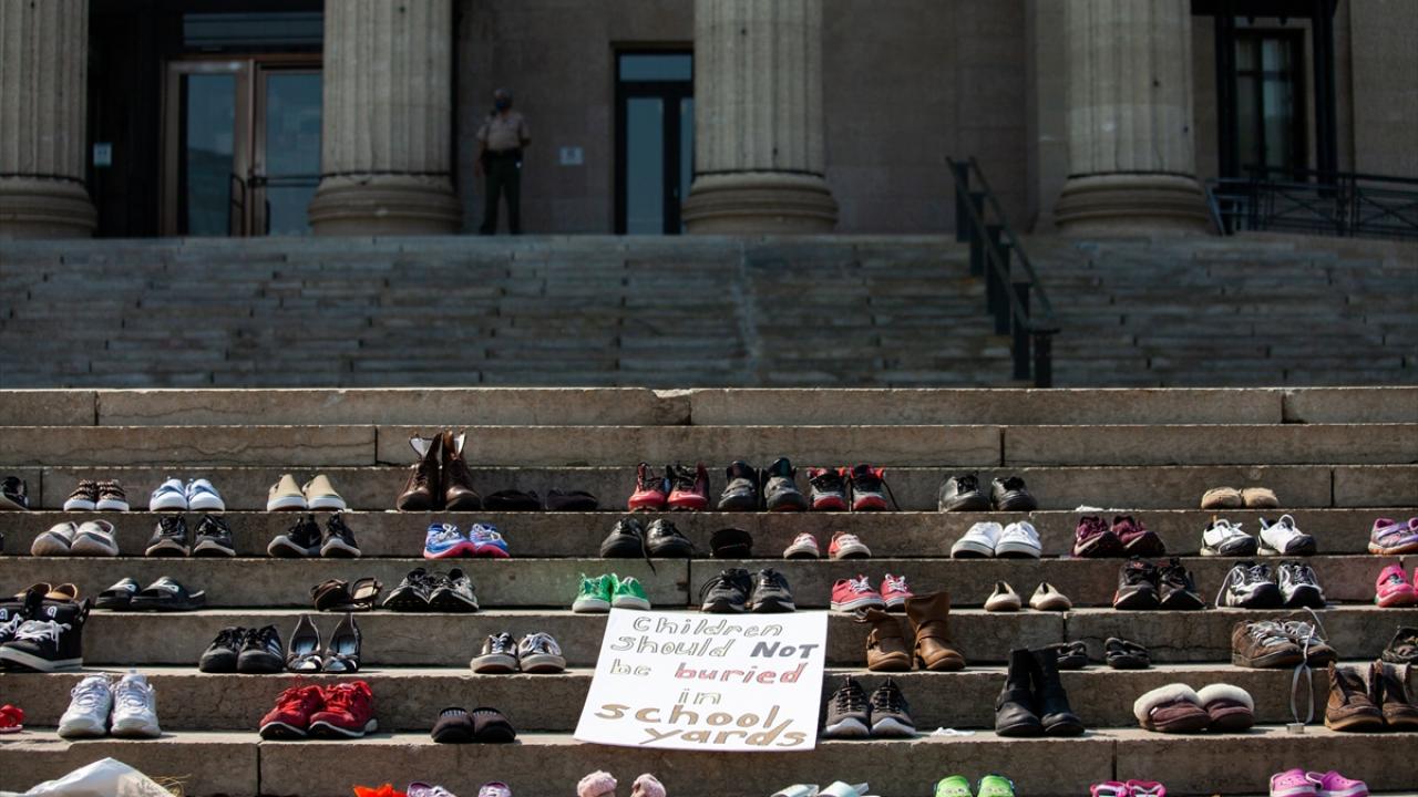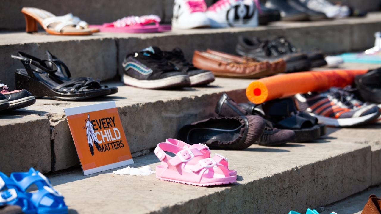 Yerli halka yönelik yapılanlara karşı tepki gösteren protestocular, Kanada Günü’nde düzenlenen miting sırasında, "Her Çocuk Önemlidir" ve "Bir zamanlar çocuktuk" sloganları atıldı.