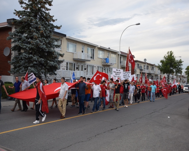 Kanada’nın Montreal ve Calgary kentlerinde yaşayan Türkler, Milli İrade ve Demokrasi Yürüyüşü ile FETÖ'nün darbe girişimini protesto etti.
