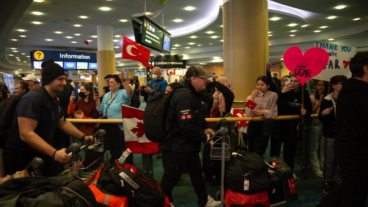 Burnaby Urban Search and Rescue (USAR) bağlı arama kurtarma ekiplerinden oluşan ekip dönüşlerinde Kanada`nın Vancouver kentinde bulunan YVR Havalimanı`nda Türkiye`nin Vancouver Başkonsolosu Mehmet Taylan Tokmak`ın yanı sıra kalabalık bir grup tarafından Türk-Kanada bayrakları ile karşılandı.