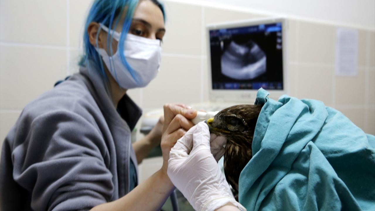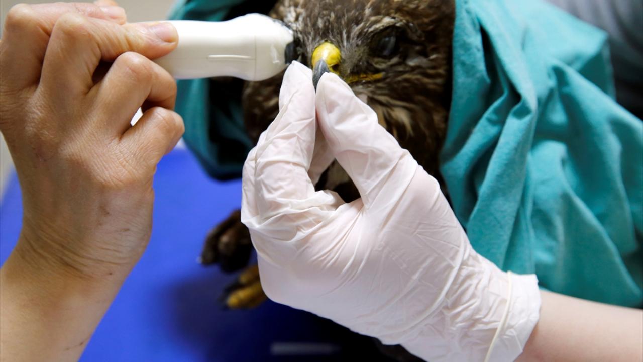Travma nedeniyle yaralı şahinin ultrasonla göz taraması ve göz tansiyonu kontrollerini yaptıklarını anlatan Nisbet, kırık kanadı için de tedavi sürecine başladıklarını belirtti.