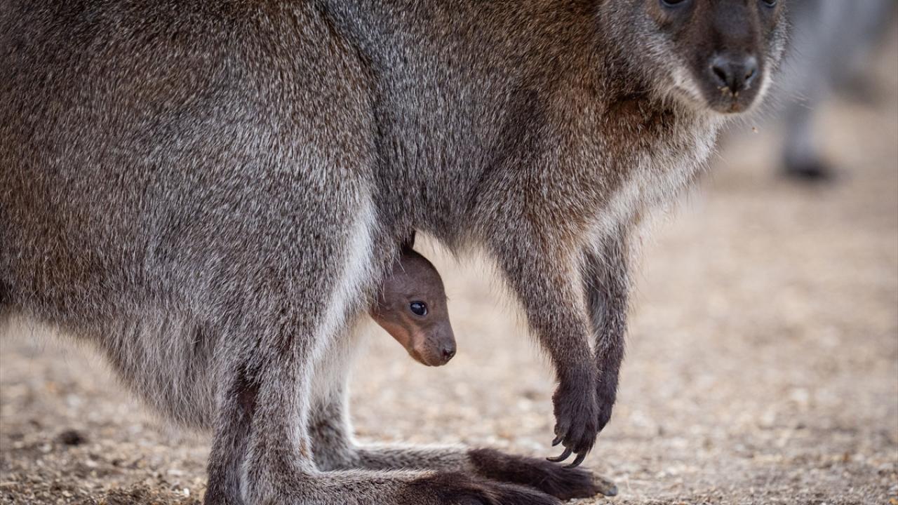 Anavatanı Avustralya olan ve 2019`da Kayseri Hayvanat Bahçesi`nden Keçiören Atatürk Doğal Yaşam Parkı`ndaki yuvalarına getirilen Valabi kanguru ailesi, dünyaya gözlerini açan yeni yavrularla büyüyor.
