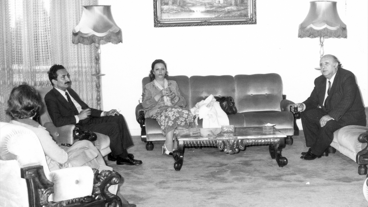 12 Eylül askeri darbesiyle milletvekilliği sona eren ve gözaltına alınan Başbakan Süleyman Demirel (sağda) ve CHP Genel Başkanı Bülent Ecevit (sol 2 ) eşleri Nazmiye Demirel (sağ 2) ve Rahşan Ecevit (solda) ile birlikte kaldıkları Çanakkale Gelibolu Hamzaköy`deki Türk Silahlı Kuvvetleri misafirhanesinden 11 Ekim 1980`de alınarak Etimesgut Askeri Havaalanı`na getirildi. (Arşiv)