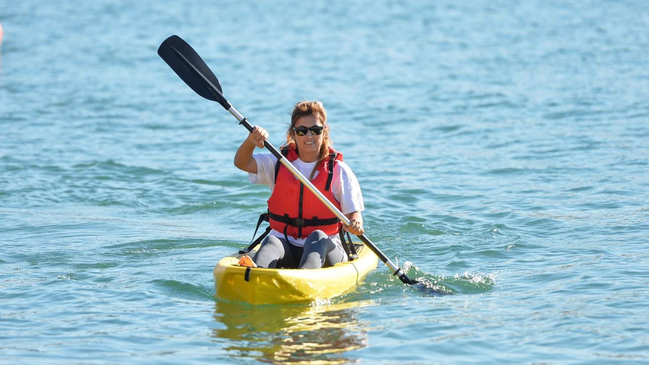 Tunceli'nin tarihi güzellikleriyle öne çıkan Pertek ilçesini ziyaret eden yerli ve yabancı turistler, çocuklarıyla Keban Baraj Gölü'nde kano yaparak keyifli vakit geçiriyor.