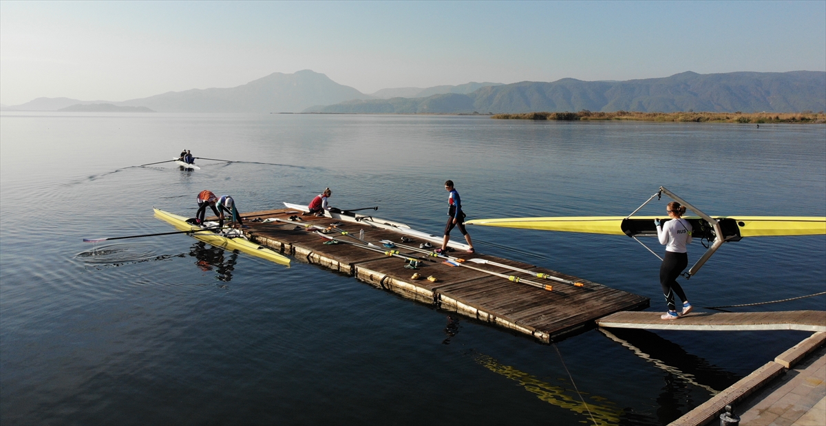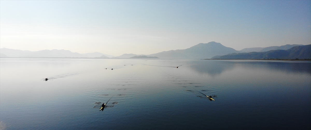Köyceğiz Su Sporları Merkezi`nde Fenerbahçe ile Galatasaray`ın kürek takımlarının yanı sıra, Türkiye`yle birlikte Rusya, Ukrayna, Macaristan ve Bulgaristan`ın hem kano hem de kürek milli takımları yaklaşık iki aydır çalışma yürütüyor.