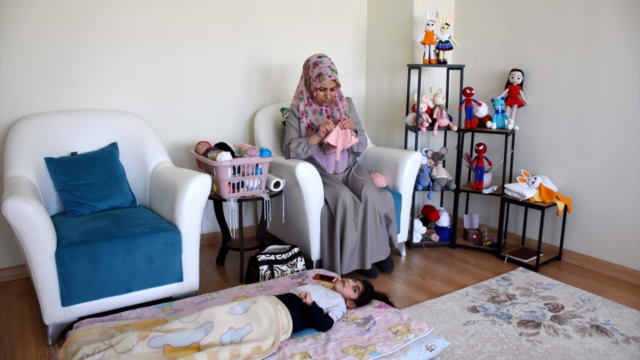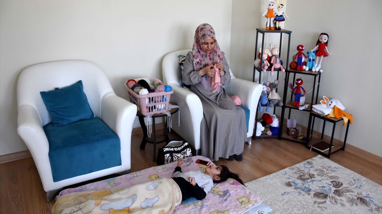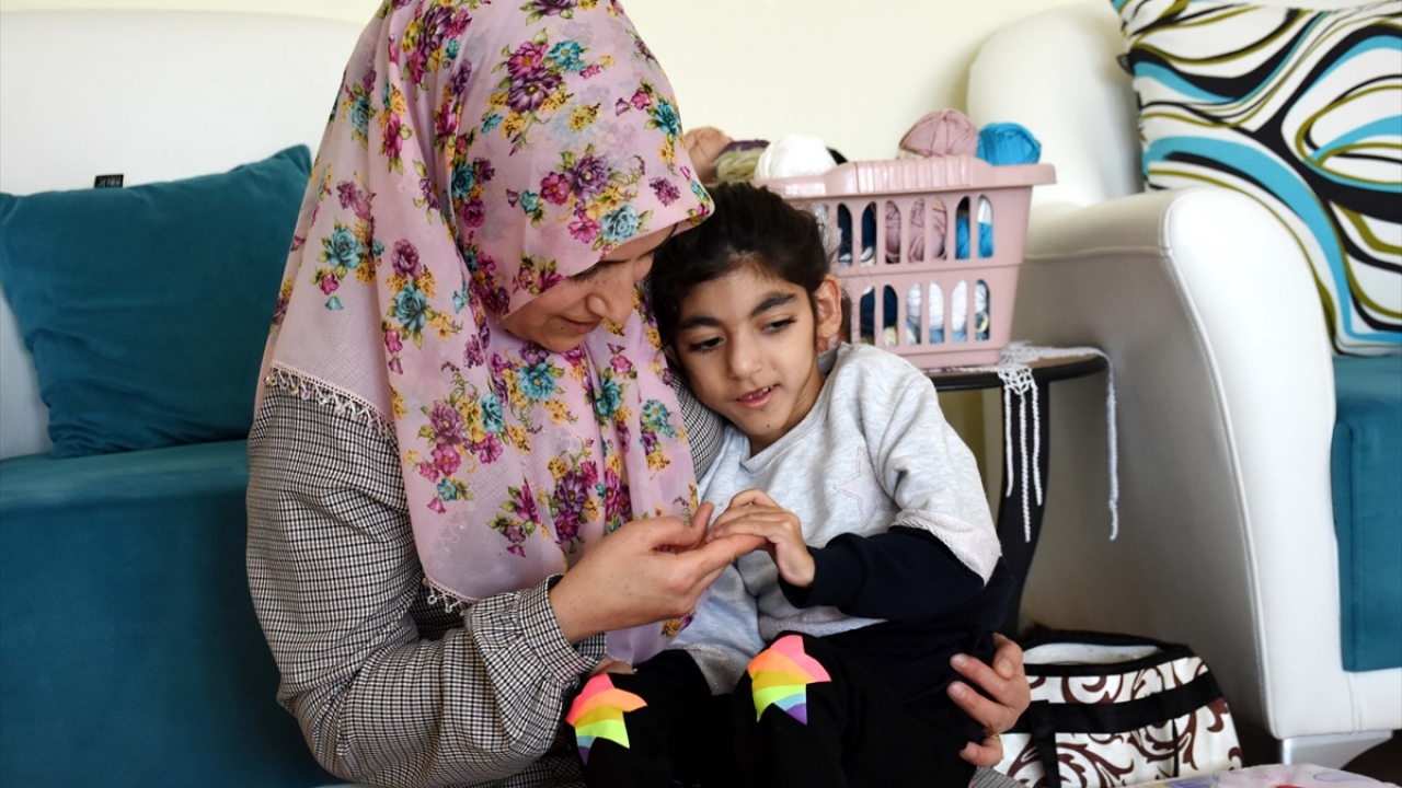 Devletin verdiği yardımların yanı sıra oyuncaklardan da para kazanan Taşkıner, beyin felci geçiren kızını bir an bile yanından ayırmadan aldığı siparişleri yetiştirmeye çalışıyor.