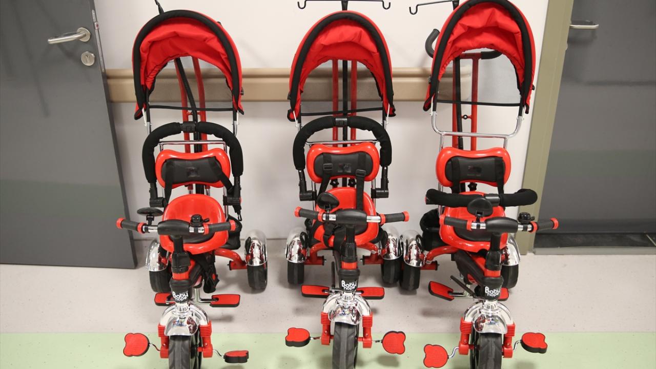 Sakarya'da kanser tedavisi gören minik hastalar, hastanede geçirdikleri süreyi keyifli hale getirmek için hazırlanan serum askılı bisikletlere (onkobis) kavuştu.