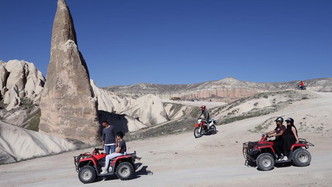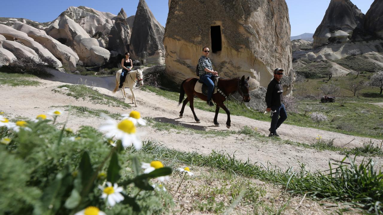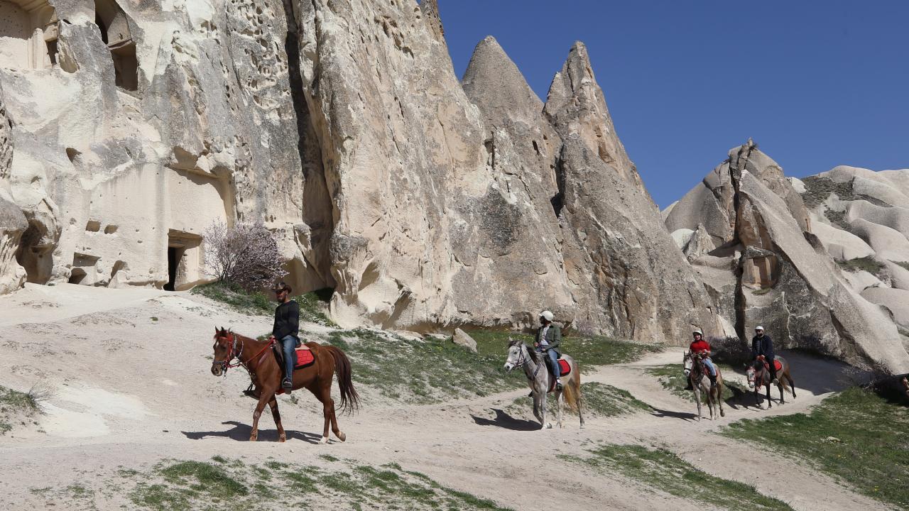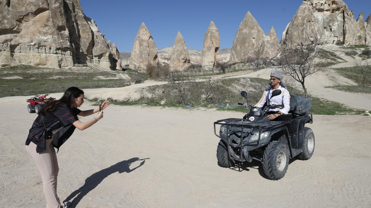 Yerli konuklar, peribacaları ve doğal kaya oluşumlarıyla kaplı Ürgüp, Göreme, Uçhisar, Ortahisar ve Çavuşin başta olmak üzere çeşitli merkezleri ve vadileri geziyor.
