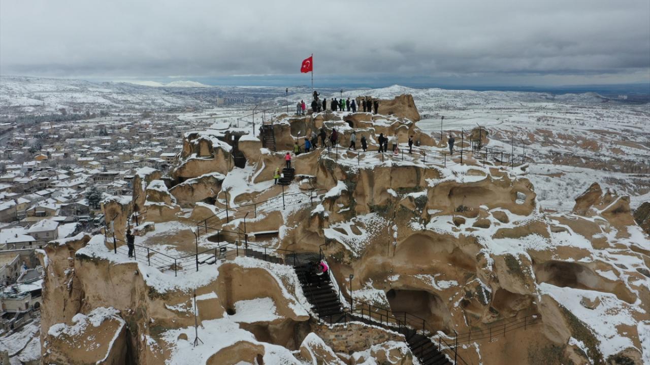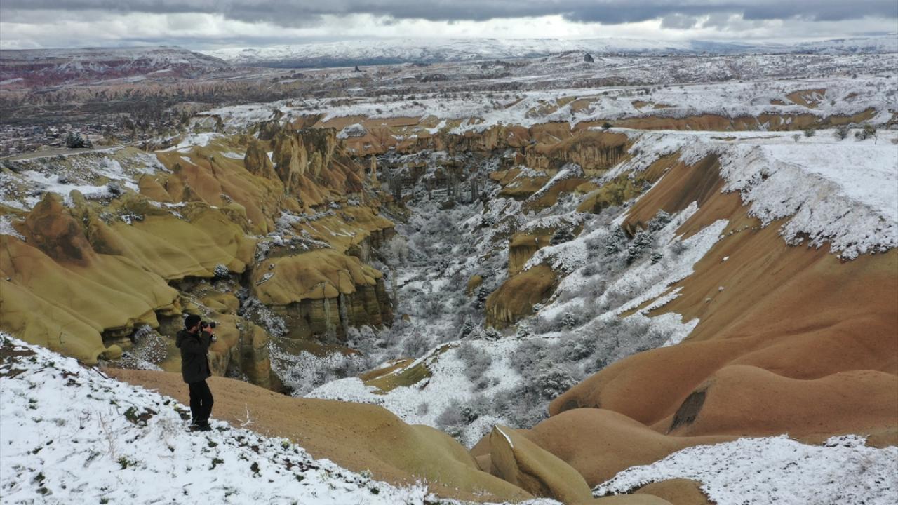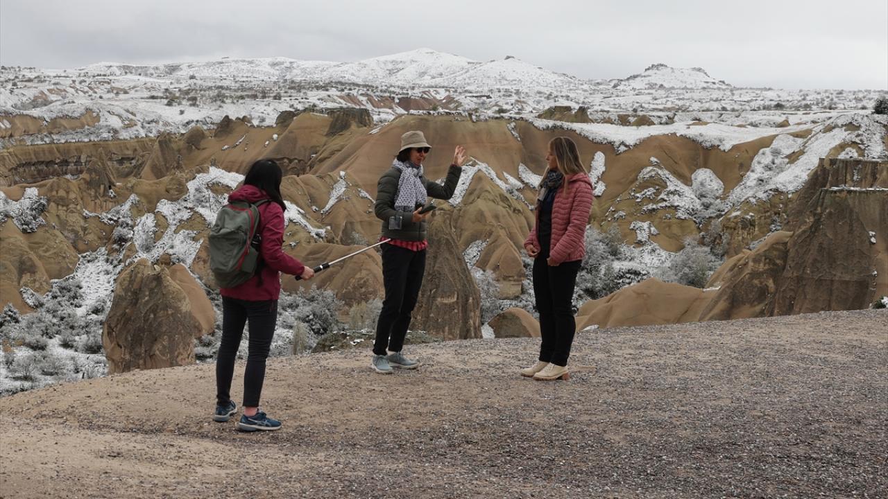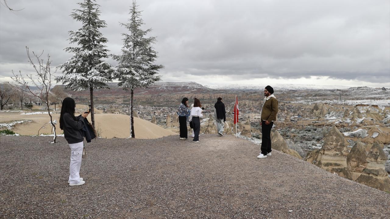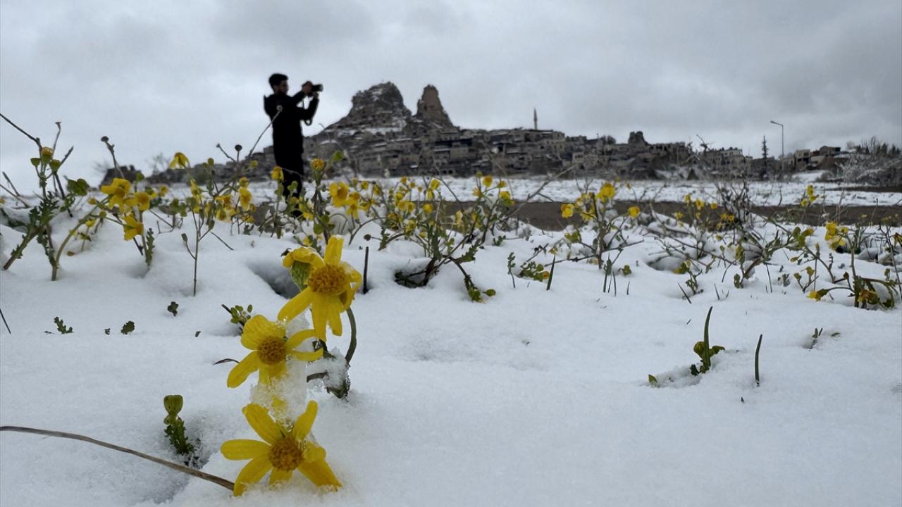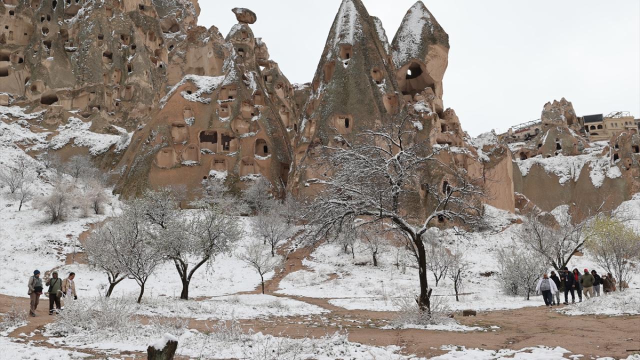 Peribacaları ve doğal kaya oluşumlarıyla her yıl milyonlarca turiste ev sahipliği yapan Kapadokya ve çevresinde sabah saatlerinden itibaren kar yağışı etkili oldu.