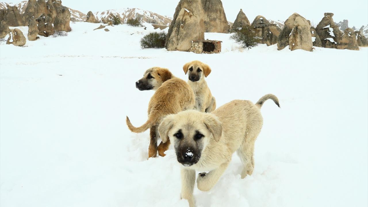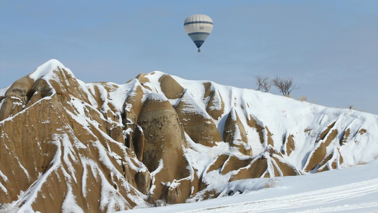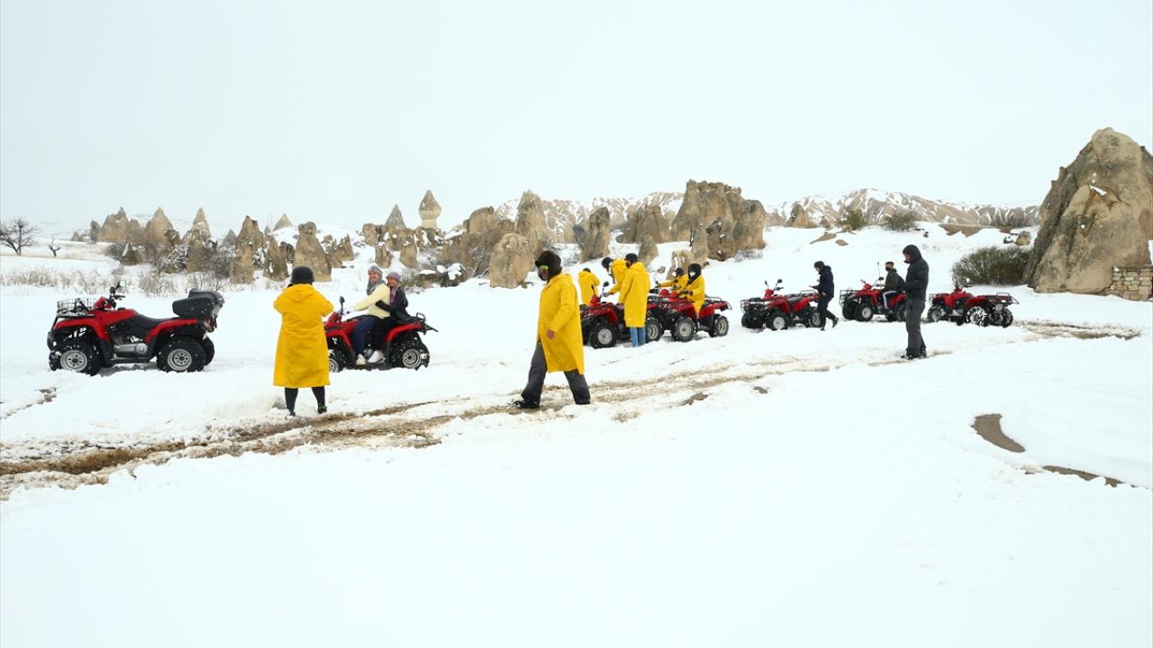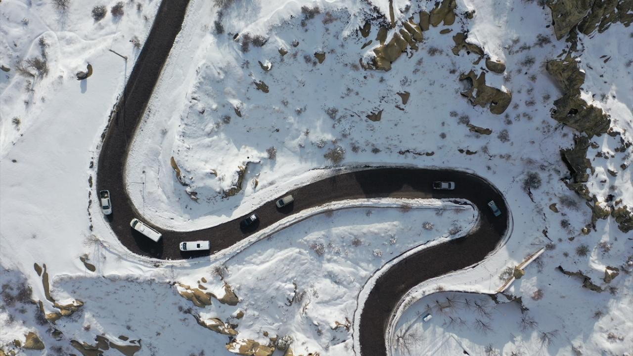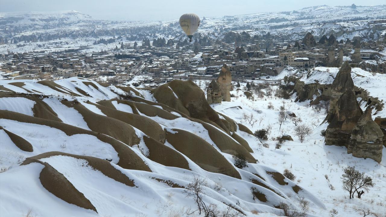 Peribacaları, doğal kaya oluşumlar ve kayadan oyma tarihi mekanların karla bütünleşmesi güzel görüntü ortaya çıkardı.