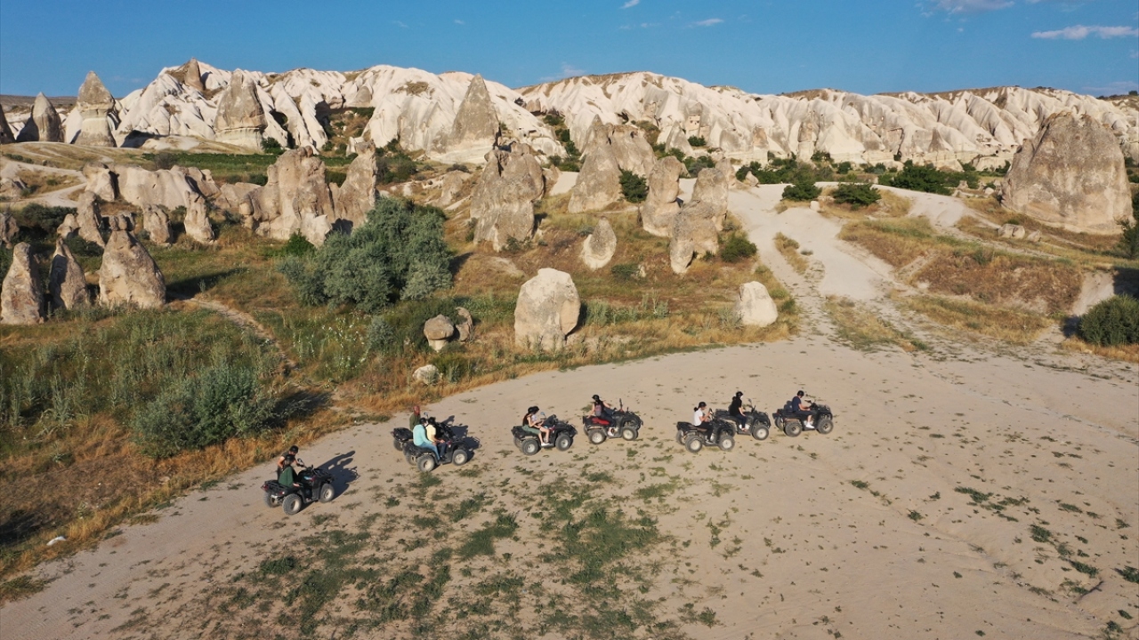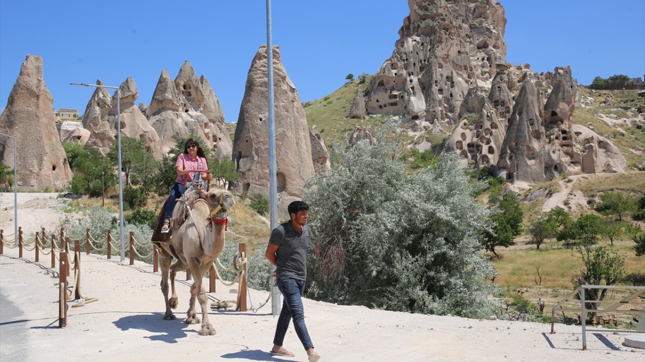Kapadokya`da, turistlerin en çok ilgi gösterdiği Ürgüp ve Avanos ilçeleri ile Göreme, Uçhisar ve Ortahisar beldeleri ve çevresindeki turistik merkezlerde gün boyu etkinliklere katılan yabancı turistler, "yeni normal"in keyfini yaşıyor.