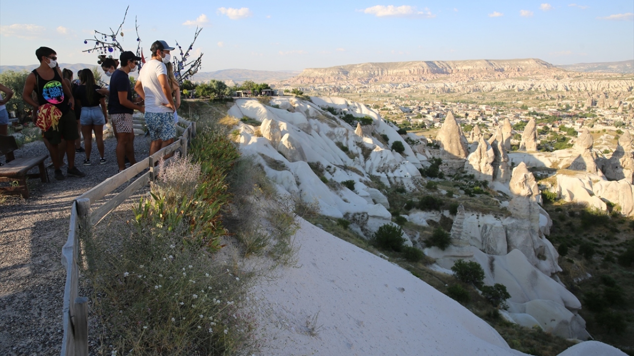 Türkiye'nin doğal, tarihi ve kültürel zenginlikleriyle bilinen önemli turizm merkezlerinden Kapadokya'da, yeni tip koronavirüs (Covid-19) tedbirleri kapsamında ara verilen uçuşların başlamasıyla yabancı turistler yeniden ağırlanmaya başlandı.