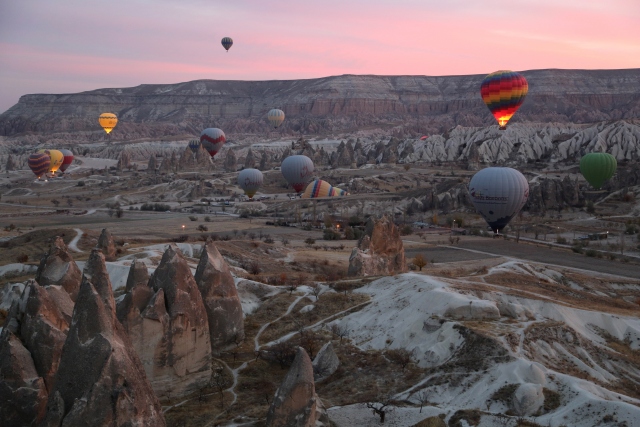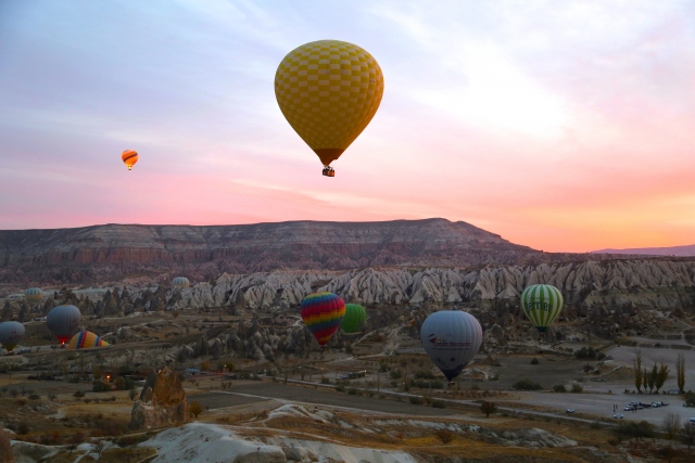 Sıcak hava balonculuğunun dünyadaki önemli merkezlerinden olan Kapadokya'da, sabahın ilk ışıklarıyla havalanan balonlar gökyüzünde güzel görüntüler oluşturuyor. Doğa harikası yeryüzü şekilleri ile ünlü Kapadokya’yı gökyüzünden keşfetmek isteyen turistler, doğal kaya oluşumlarını kuşbakışı izleyebilmek için balon turlarına ilgi gösteriyor.