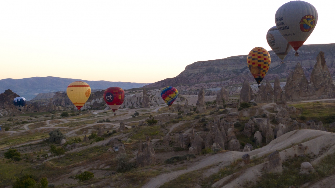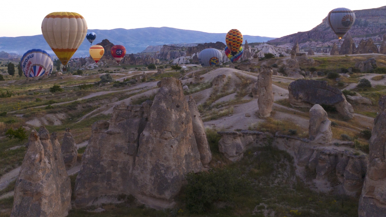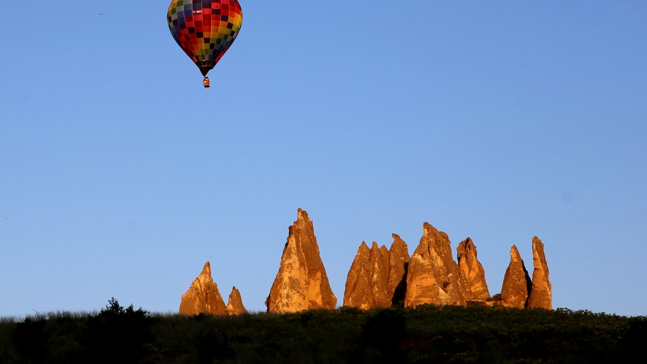 Peribacaları ve doğal kaya oluşumlarıyla kaplı bölge semalarında süzülen sıcak hava balonları renkli görüntülere sahne oldu.