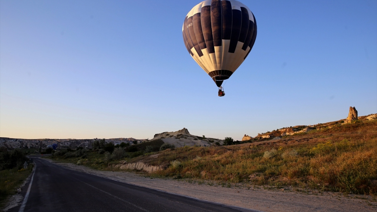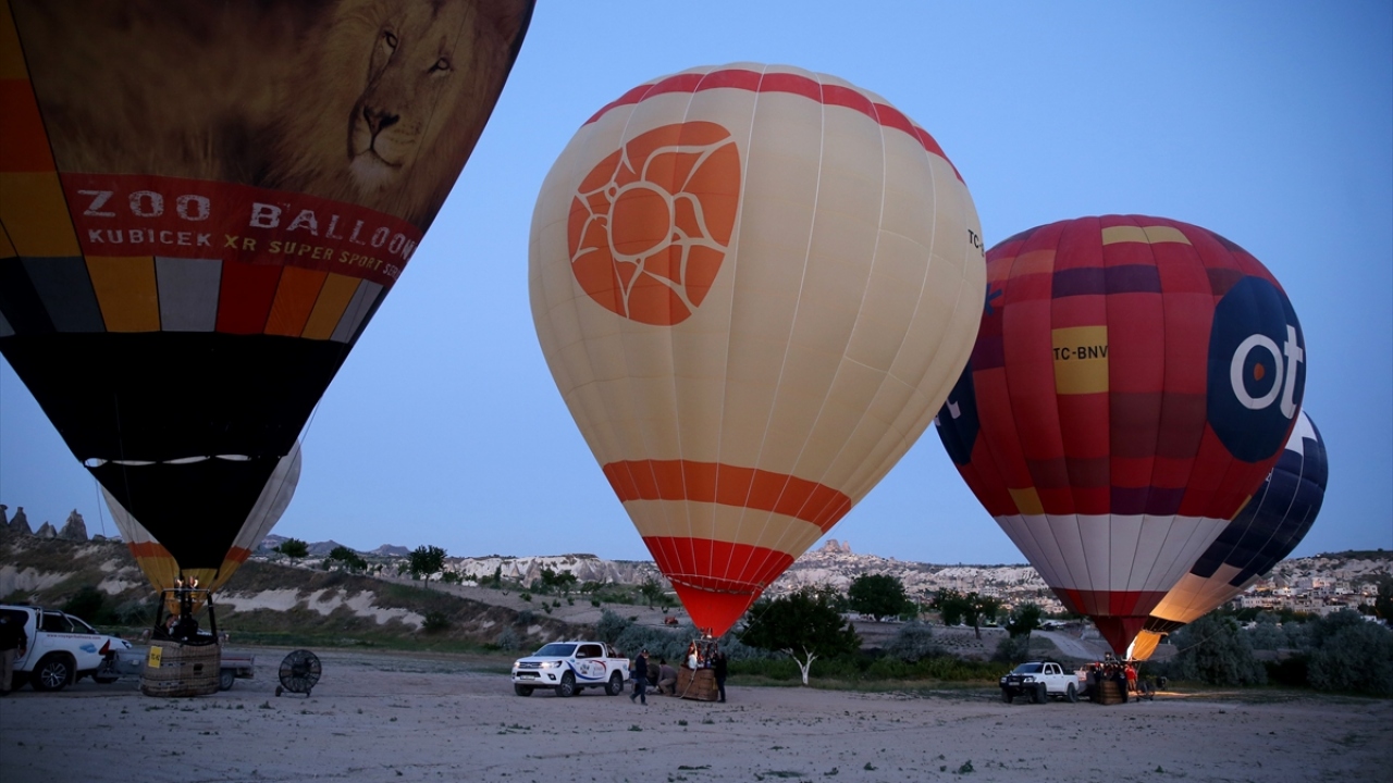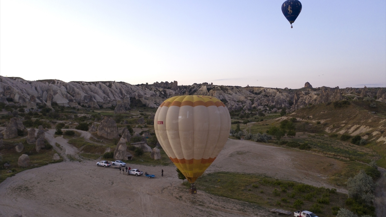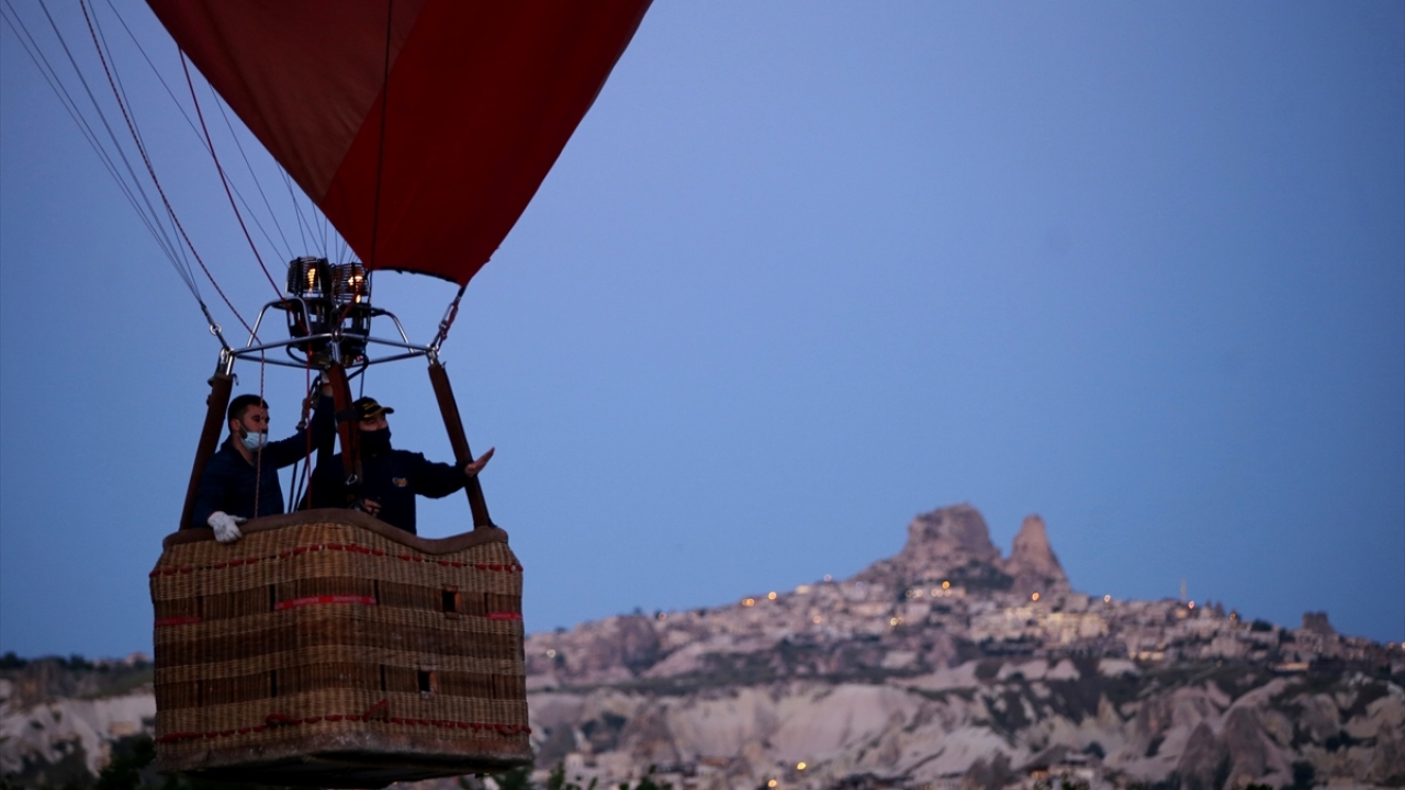 Kapadokya bölgesinde yeni tip koronavirüs (Kovid-19) tedbirleri kapsamında tur organizasyonu geçici olarak durdurulan sıcak hava balonları, eğitim alan pilotların test uçuşu için havalandı.