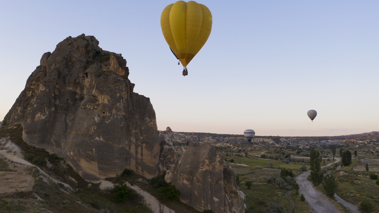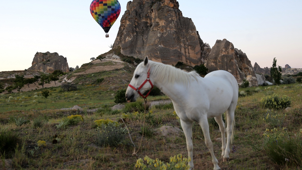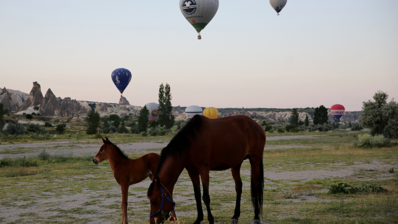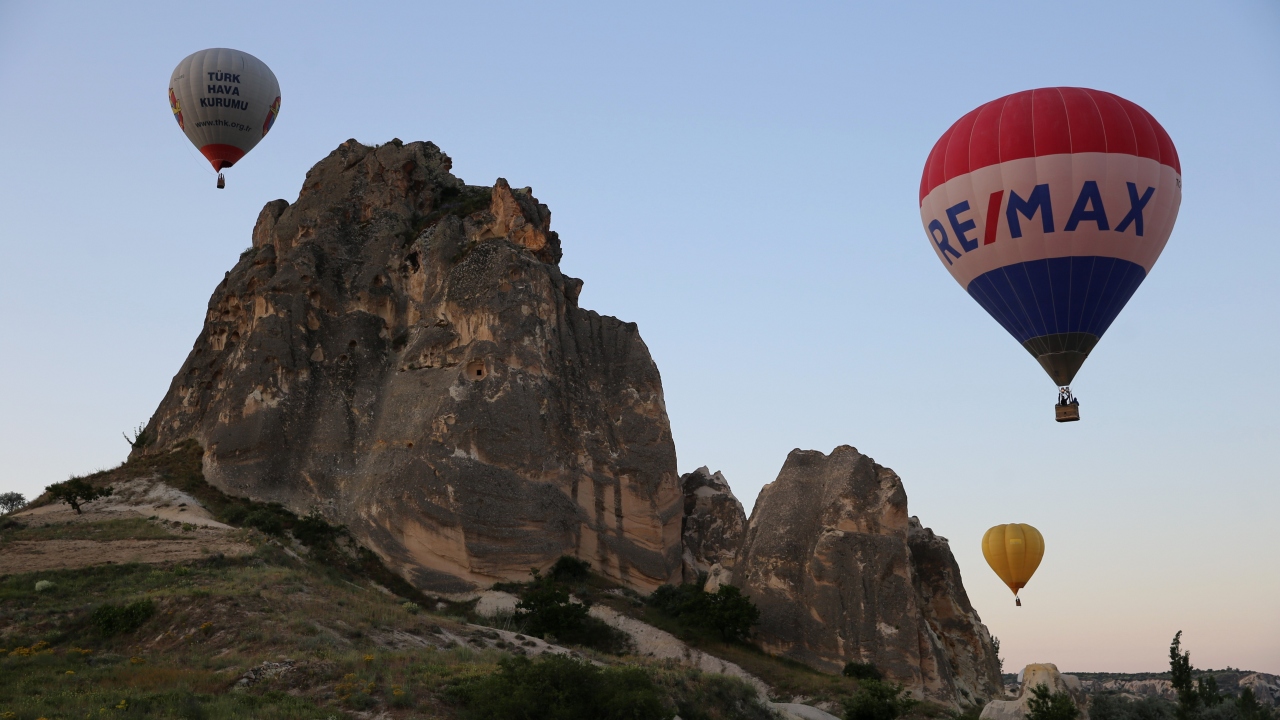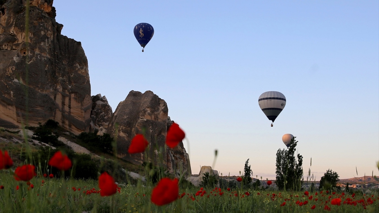 Kapadokya bölgesinde yeni tip koronavirüs (Kovid-19) tedbirleri kapsamında tur organizasyonu geçici olarak durdurulan sıcak hava balonları, eğitim alan pilotların test uçuşu için havalandı.