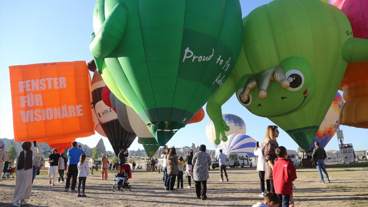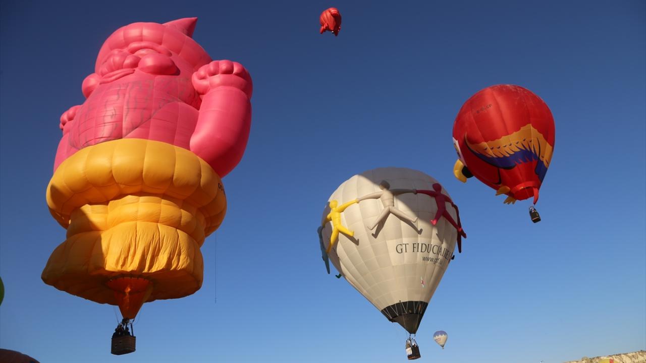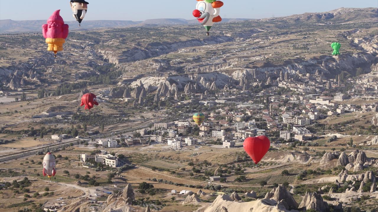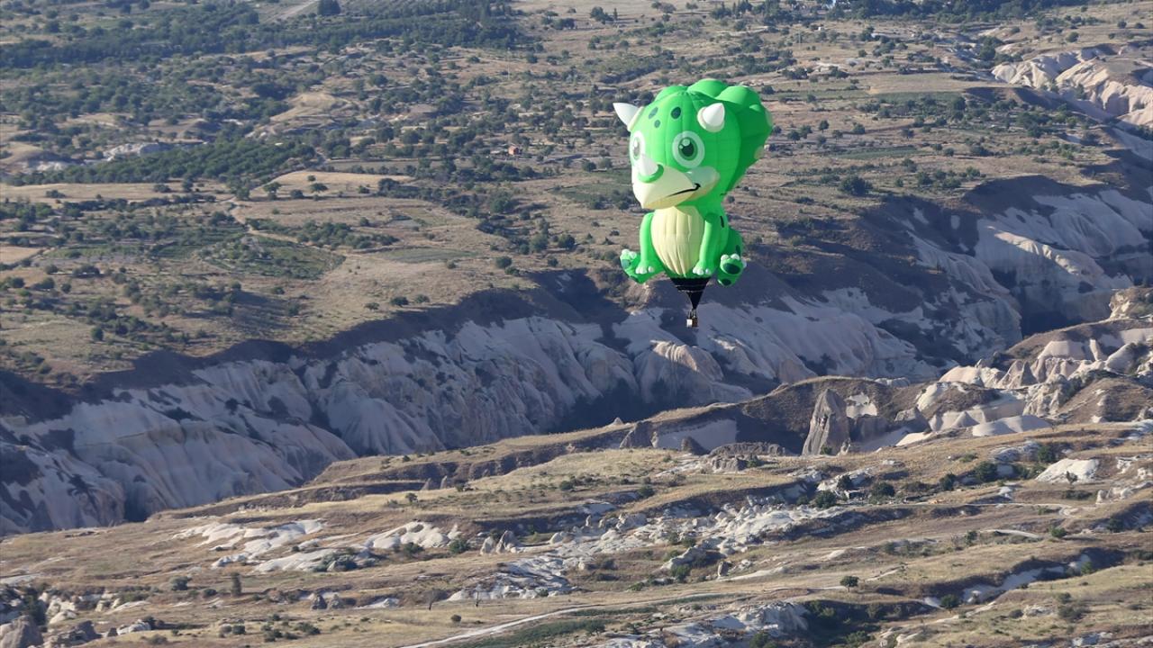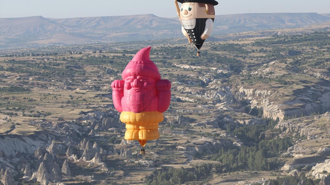 Nevşehir'in Göreme beldesinde düzenlenen "3. Uluslararası Kapadokya Sıcak Hava Balon Festivali" (BALONFEST 2022), etkinliğin ikinci gününde çeşitli ülkelerden gelen figürlü balonların gösteri uçuşu ile devam etti.